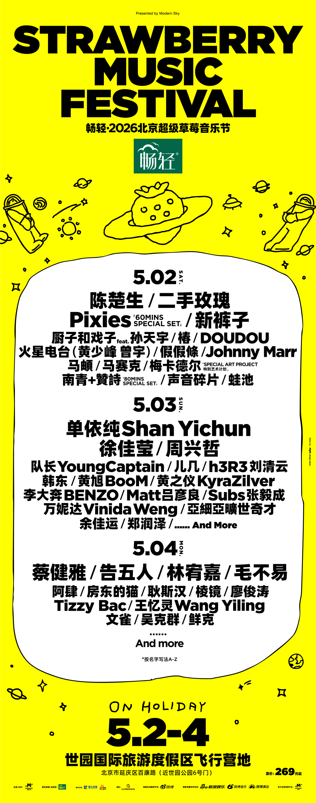 更多音乐节信息可点击查看>>>五一假期,畅轻·2026北京超级草莓音乐节阵容揭晓!