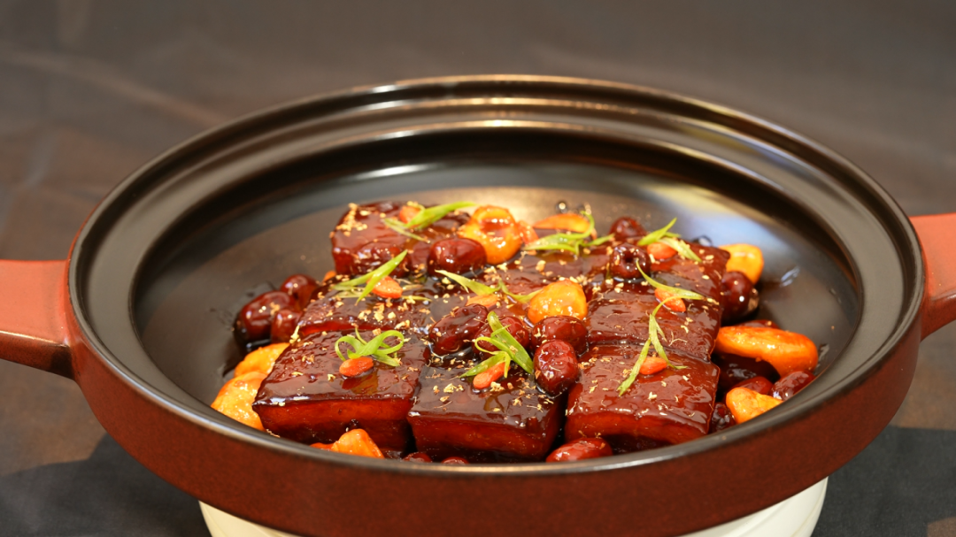 延庆板栗红烧肉承千年东坡肉之精髓,融妫川大地之特色。板栗的粉糯香甜,搭配五花肉的丰腴紧实,美味十足。
