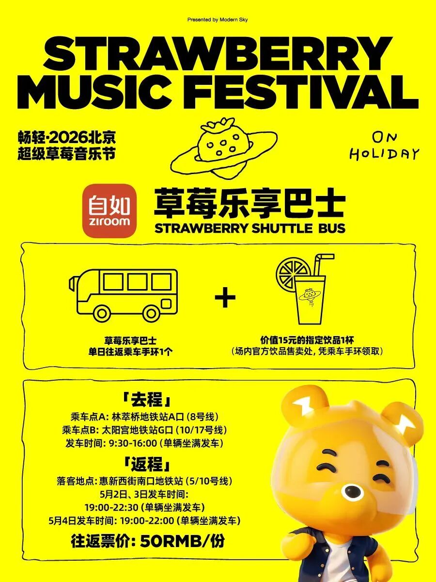 本次音乐节特别安排了“草莓乐享巴士”,为前往音乐节的观众提供便利的交通服务。