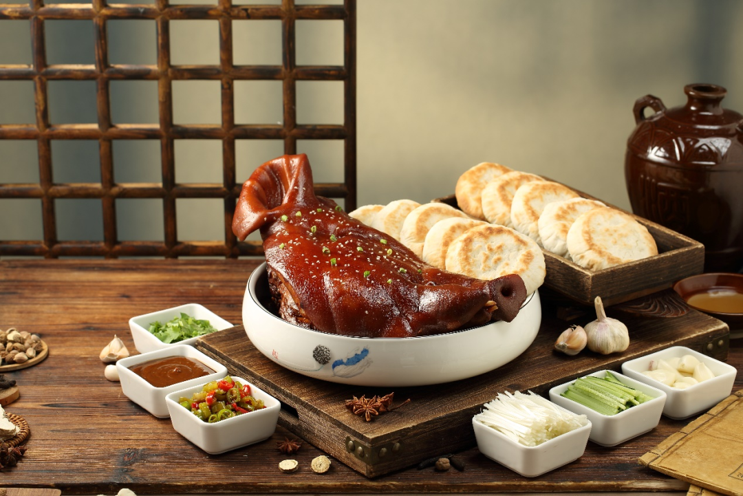 贺氏酱猪脸选用二十余种调味料,严格的原料配比,超过八小时的炖煮让它成为不可辜负的美食。老汤慢熬,肥而不腻,搭配延庆火勺,香到停不下来。