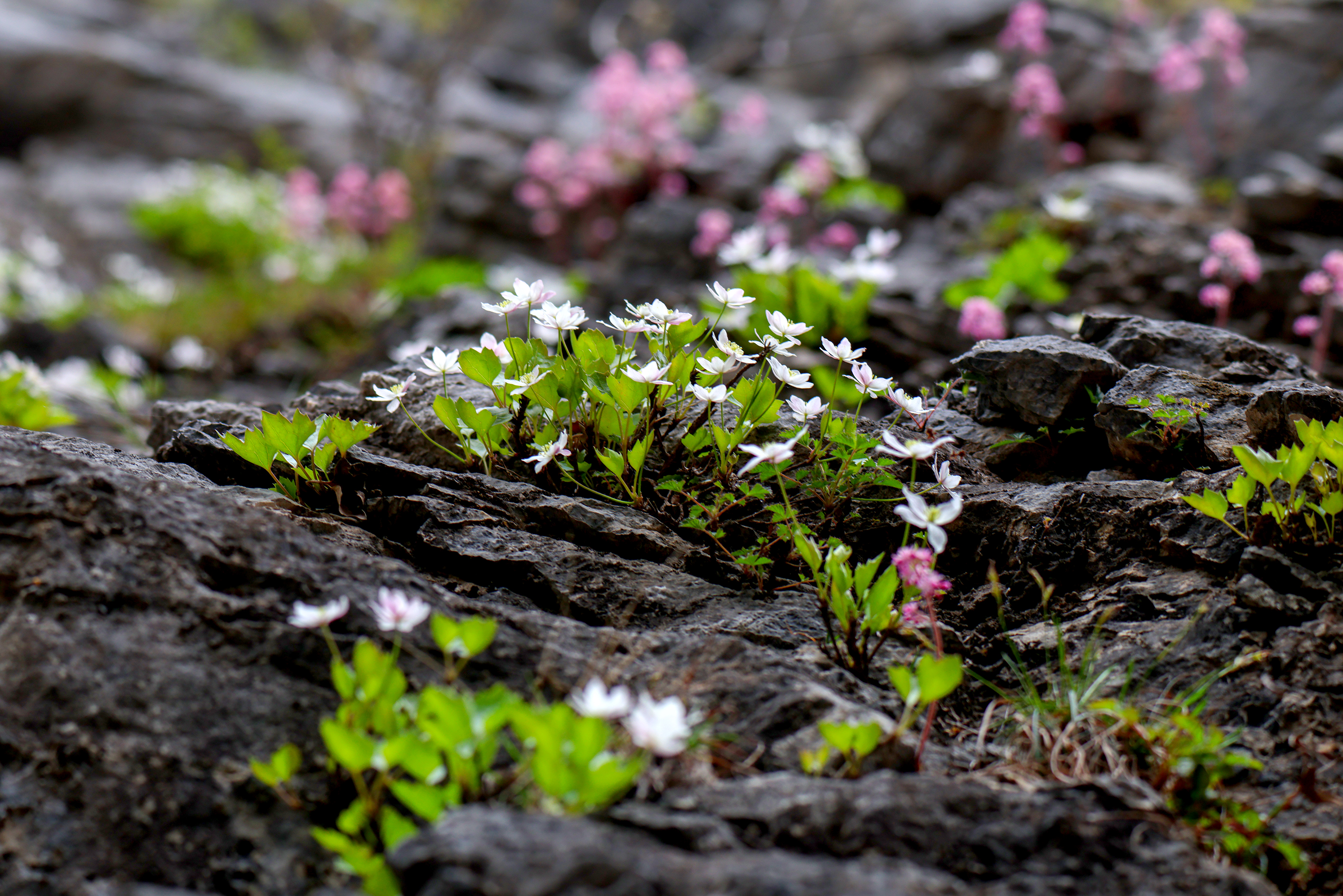 槭叶铁线莲共有种群62个,个体4152株丛,集中连片分布面积达28236平方米,丁香叶忍冬28株,其中一株为北京市目前发现的最大单株丁香叶忍冬,地径达12.5厘米、高近4米。保护小区周围还集中分布有野生榆叶梅、暴马丁香、山桃、山杏、小叶白蜡等乡土观赏植物,形成了植物种类丰富、景观层次分明的超大尺度森林生态景观。