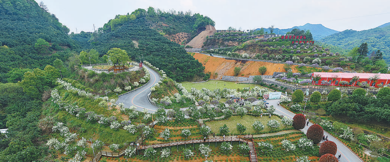 2023年4月,中华木绣球博览园开园,吸引大量游客。广丰区系统性地对景区周边环境进行整治提升,并提供资金支持,博览园修建大型停车场,新建多处观景台,设置打卡点;打通花海内外环线……