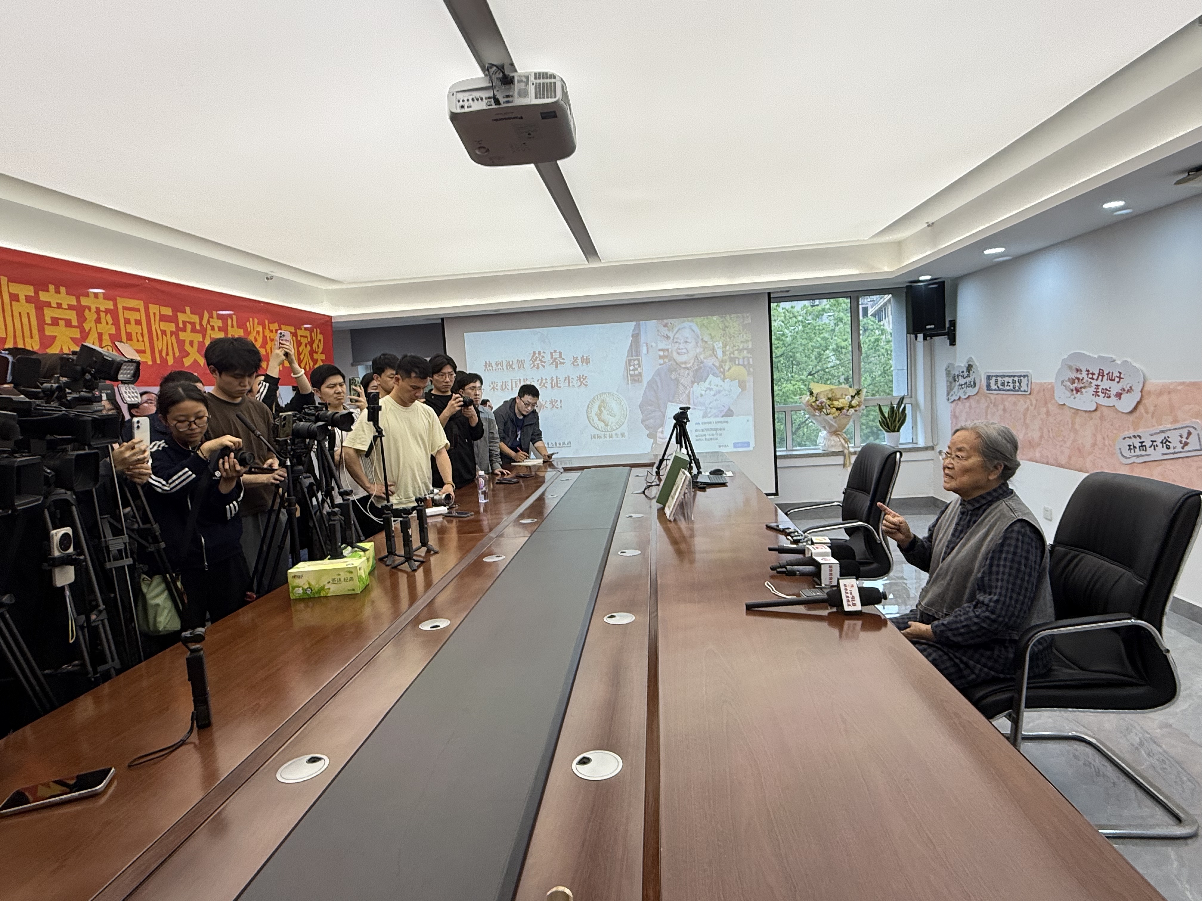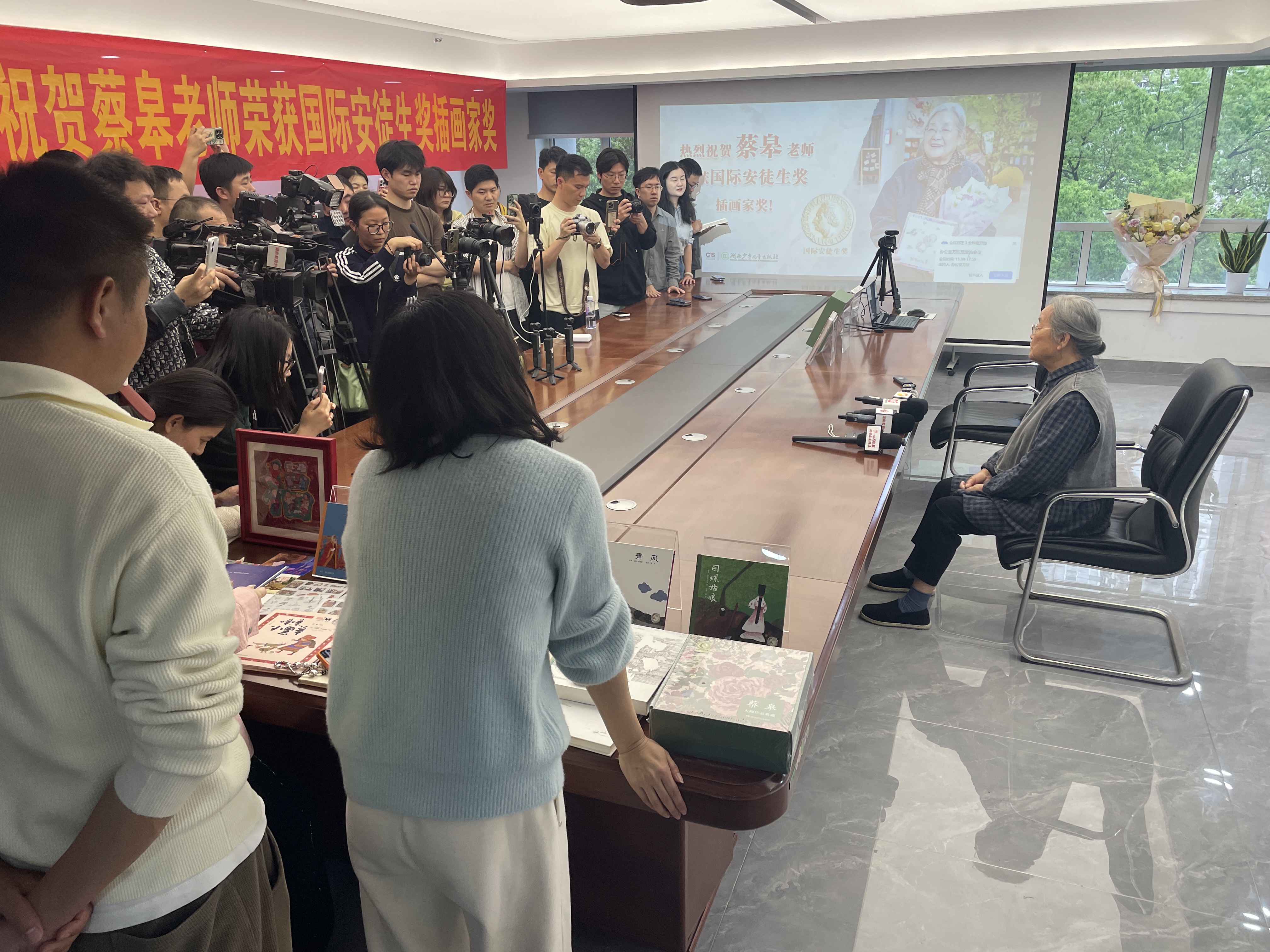 “我觉得这个奖项不是给我一个人的!” 4月14日下午,刚刚获得2026年国际安徒生奖插画奖的“绘本奶奶”蔡皋在位于长沙的湖南少年儿童出版社接受了媒体记者采访。她回应获奖后的激动、感恩,更谈及对生命、对生活、对童年、对创作的丰富又细腻的感受,她以哲学家一般的精妙语言,揭示幸福生活的真相,洞悉创作的奥秘。