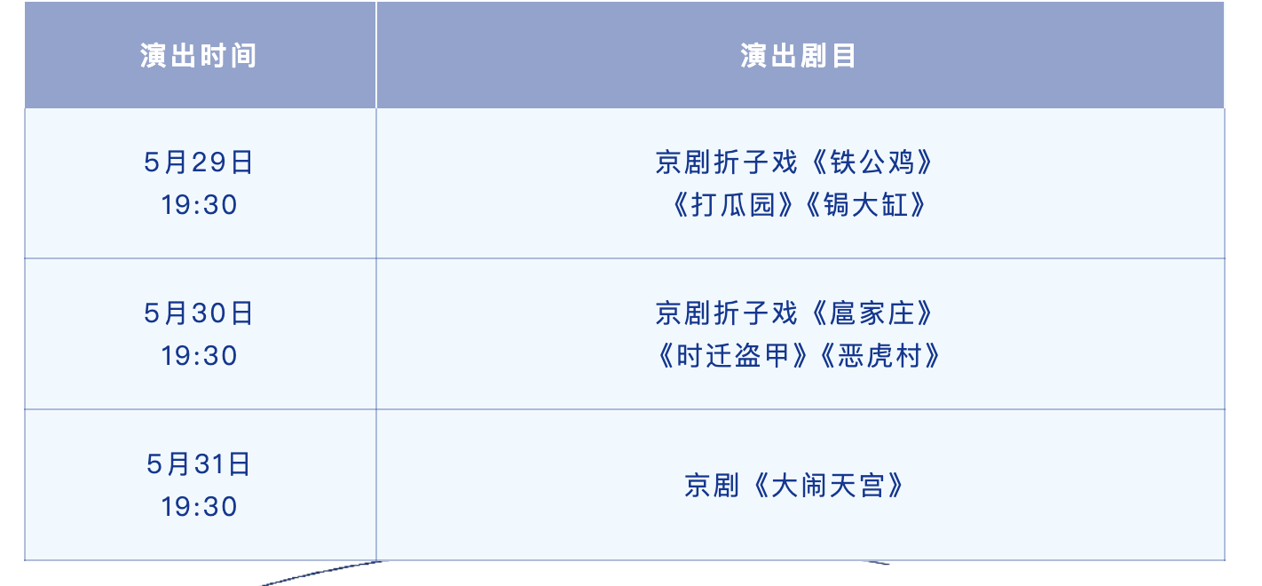 国家京剧院自2021年起连续举办五届武戏展演,所涉剧目既有观众耳熟能详的《三岔口》《林冲夜奔》,又有技艺独特的《盗王坟》《起布问探》;既有长枪大马“三国戏”《战马超》《单刀会》,又有扑刀棍棒“水浒戏”《收关胜》《狮子楼》,同时《三江越虎城》《蒋平捞印》《洗浮山》等隋唐家将、三侠五义、施公案故事和经典武旦剧目《青石山》《虹桥赠珠》,也一并令广大观众过足戏瘾。此次展演遴选剧目《铁公鸡》《打瓜园》《锔大缸》《扈家庄》《时迁盗甲》《恶虎村》《大闹天宫》反扑跌打无所不具,生旦净丑一应齐全,既推出京剧武戏传承的经典,又呈现武戏演员游刃有余的技艺精髓。一直以来,国家京剧院始终武戏人才培养和梯队建设,促进京剧武戏挖掘继承和研习创新。