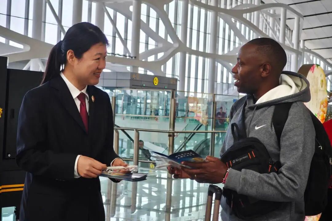 为进一步增强宣传实效,活动现场还设置了知识互动问答环节。检察人员主动向外籍旅客介绍活动内容,发放中英文双语普法宣传知识问答手卡,用英语向外籍旅客讲解在华旅游、工作、维权等相关法律规定,帮助外籍旅客快速了解在中国生活的基本法律红线与权益保护渠道。