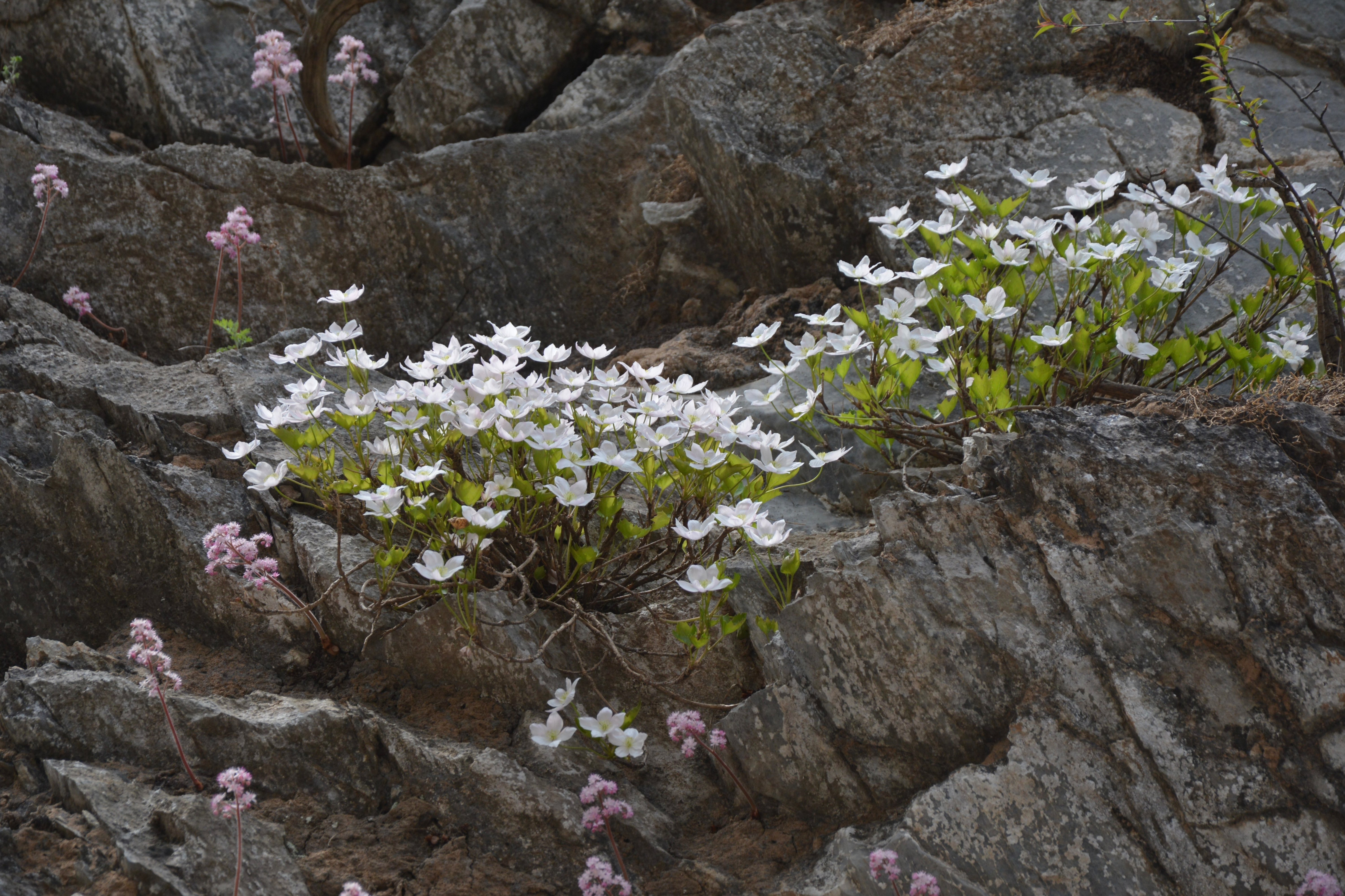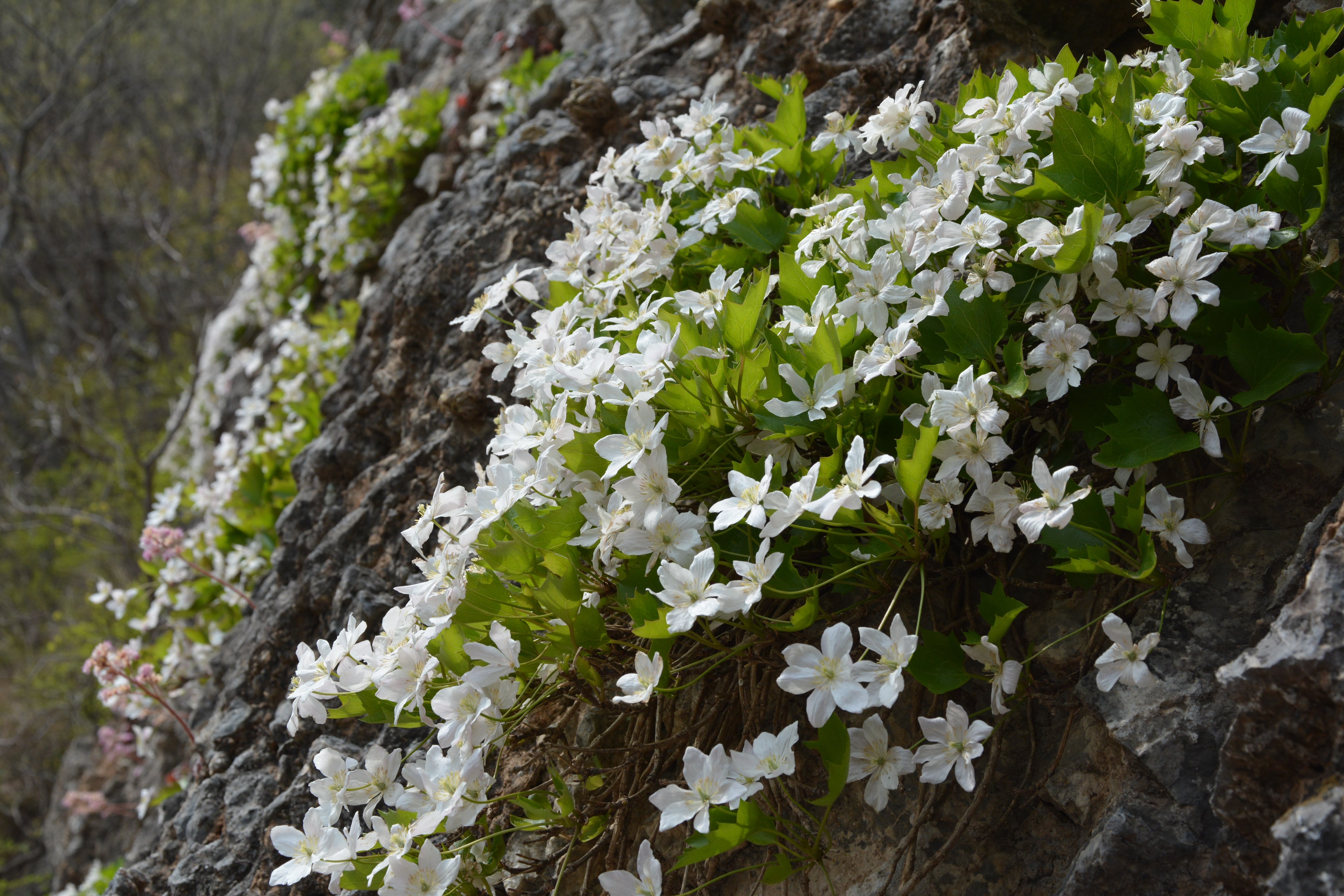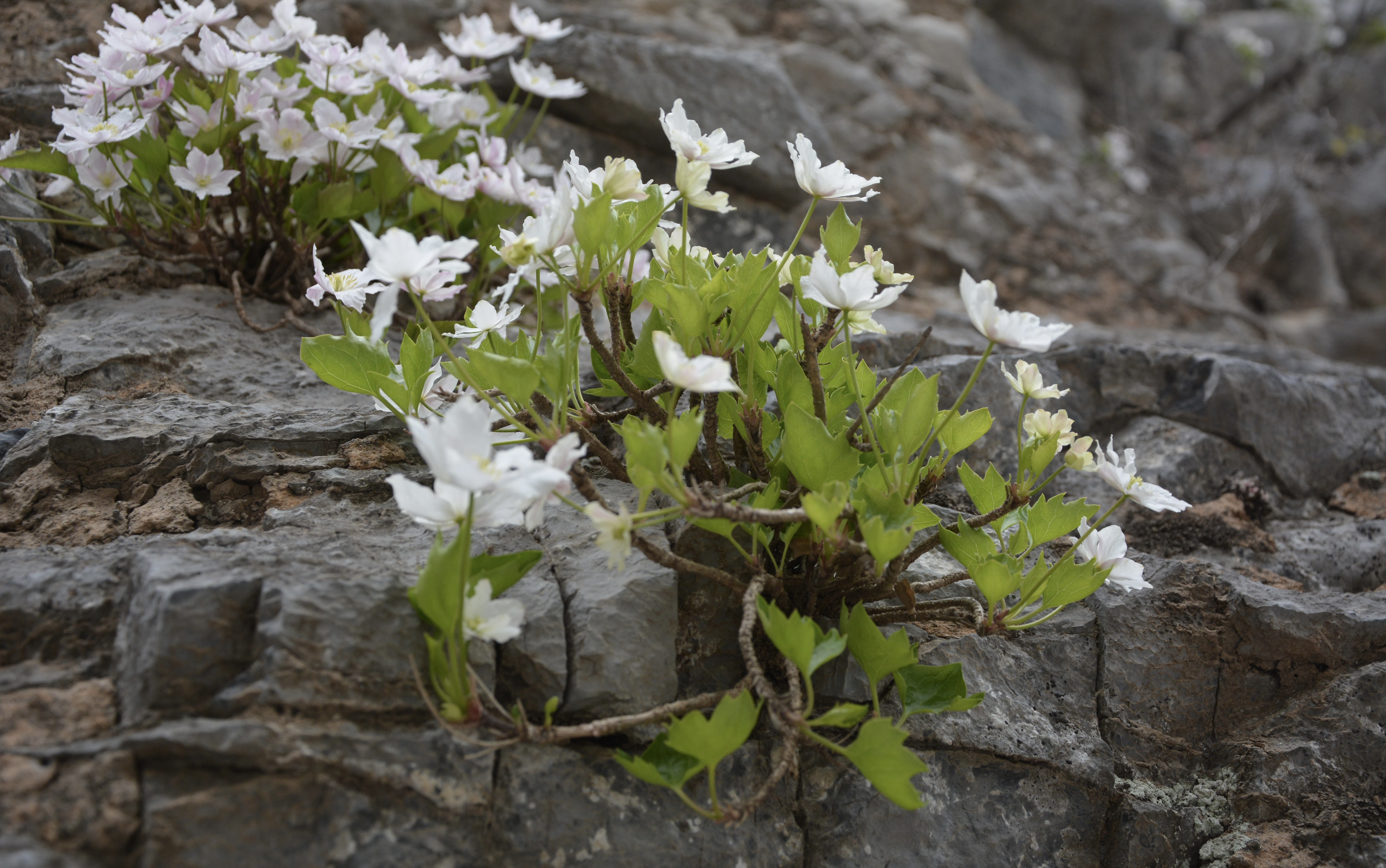 槭叶铁线莲以绝壁生根、凌空绽放的姿态,彰显着顽强的生命力。