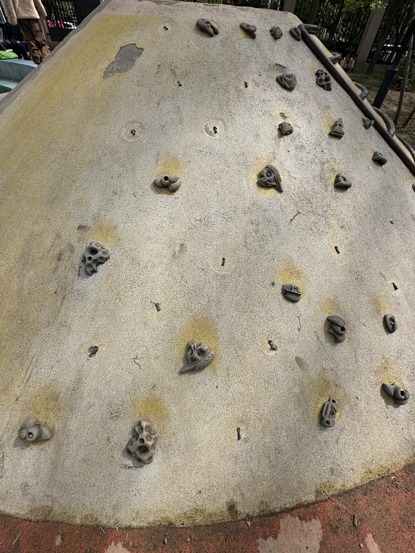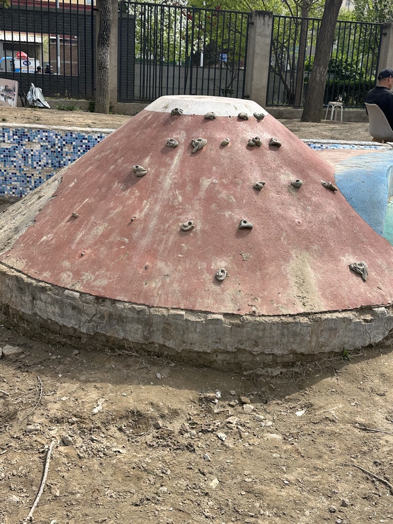 即便仍能使用的攀岩钉,不少也已松动,用手轻轻一推就来回打转,根本起不到支撑作用。“这里应该是公园最早的儿童游玩区了,孩子就喜欢在这儿攀爬,现在破成这样,实在让人放心不下。” 一位家长无奈地说道。