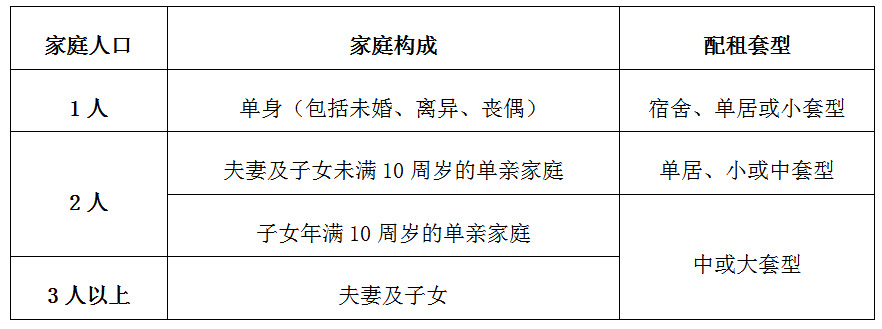 登记家庭应在保障性住房备案资格规定的配租套型标准内选择唯一套型(如小套型、中套型、大套型)进行意向登记。配租套型标准为: