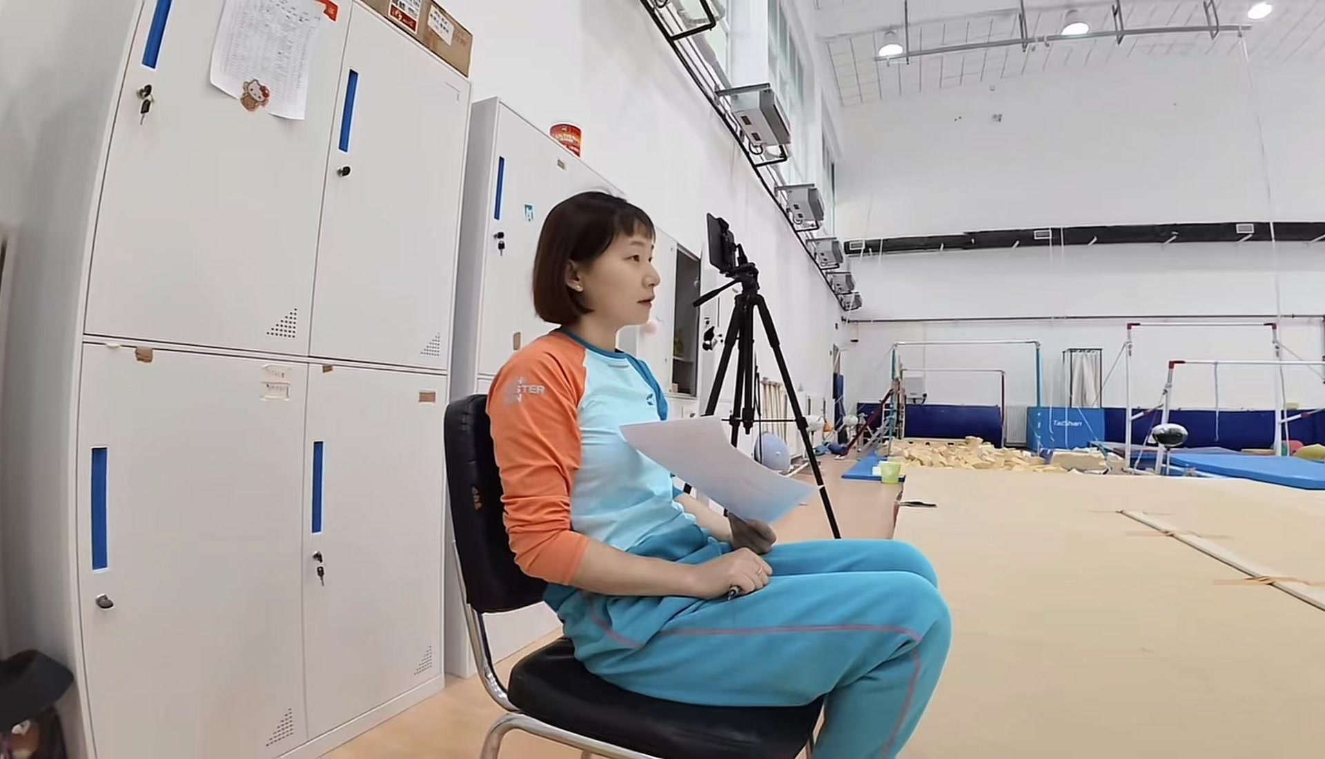 先农坛体校体操训练室内,连珠炮似的京腔女声回响。张楠背靠在平衡木上,一手拿着几张印着训练计划的A4纸,一手不时在空中比画着,目光紧盯着眼前刻苦训练的小队员。