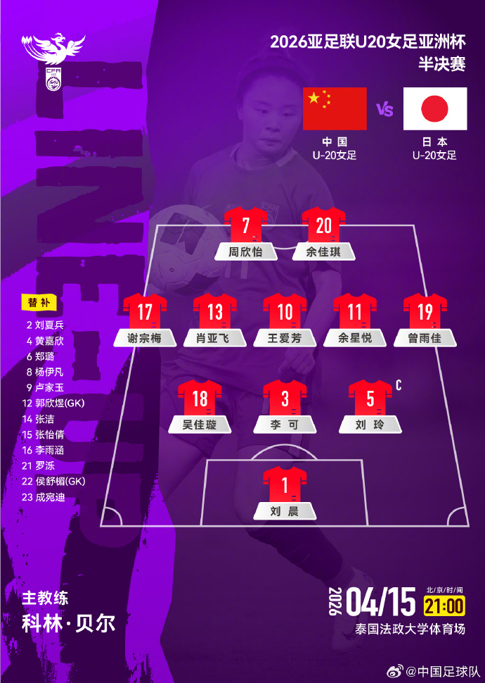2026亚足联U20女足亚洲杯半决赛,中国队公布首发阵容