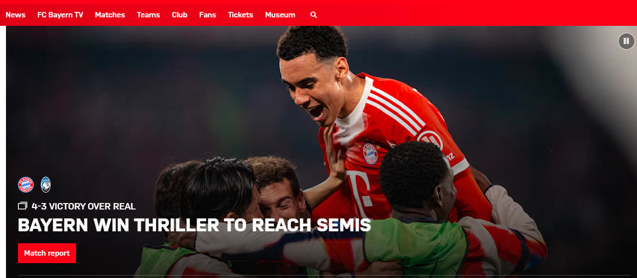 北京时间4月16日凌晨,本赛季欧冠联赛四强出炉。1/4决赛次回合最后一个比赛日焦点战,德甲拜仁慕尼黑队在主场4比3击败西甲皇家马德里队,总比分6比4淘汰对手,晋级半决赛。