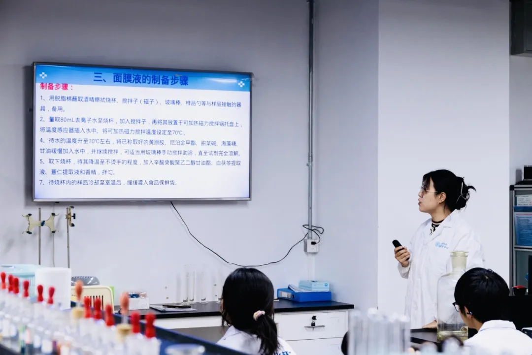 王烨老师为学生介绍面膜液的制备步骤