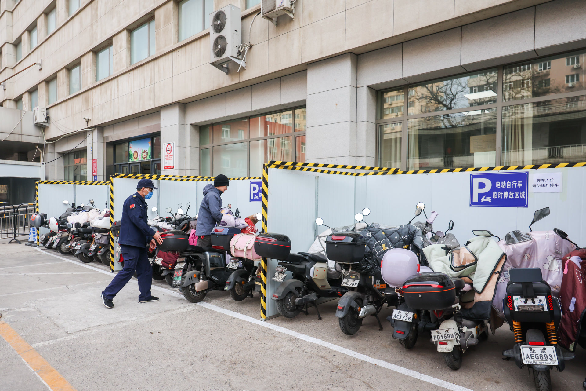 复兴医院,位于西城区复兴门外大街。由于院内空间狭小,过去禁止患者的电动自行车进入,大量非机动车停放在周边道路上,影响通行环境。通过挖掘空间资源,院内新建了电动自行车停车区,距离急诊楼仅“一步之遥”。