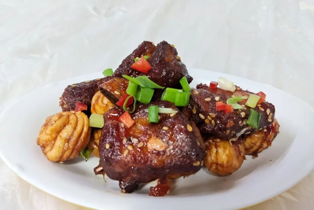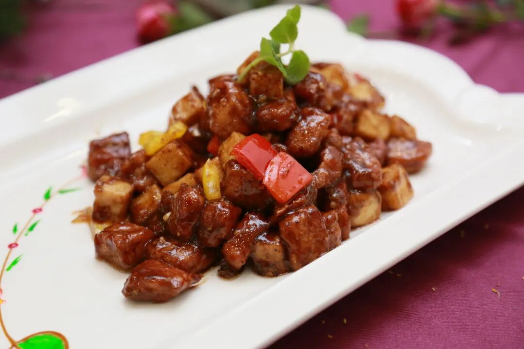 蟹粉狮子头、响油鳝糊、麻椒鲈鱼、扬州风鹅、江南红烧肉、黑椒牛肉粒、江南十香菜