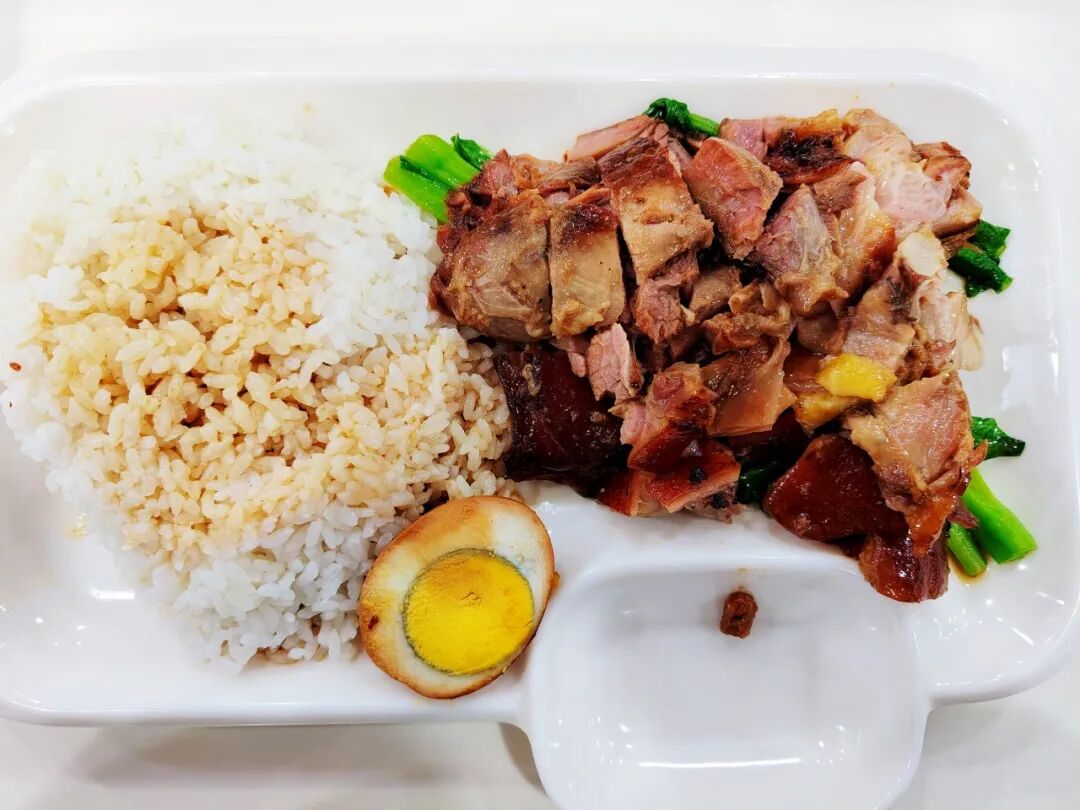 一层:广式烧腊饭、小笼包、咖喱鸡、水果捞