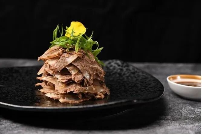 垛子牛肉、广式烧鹅、蜜汁叉烧肉、酱香烤羊排、松鼠桂鱼、甲所特色大饼