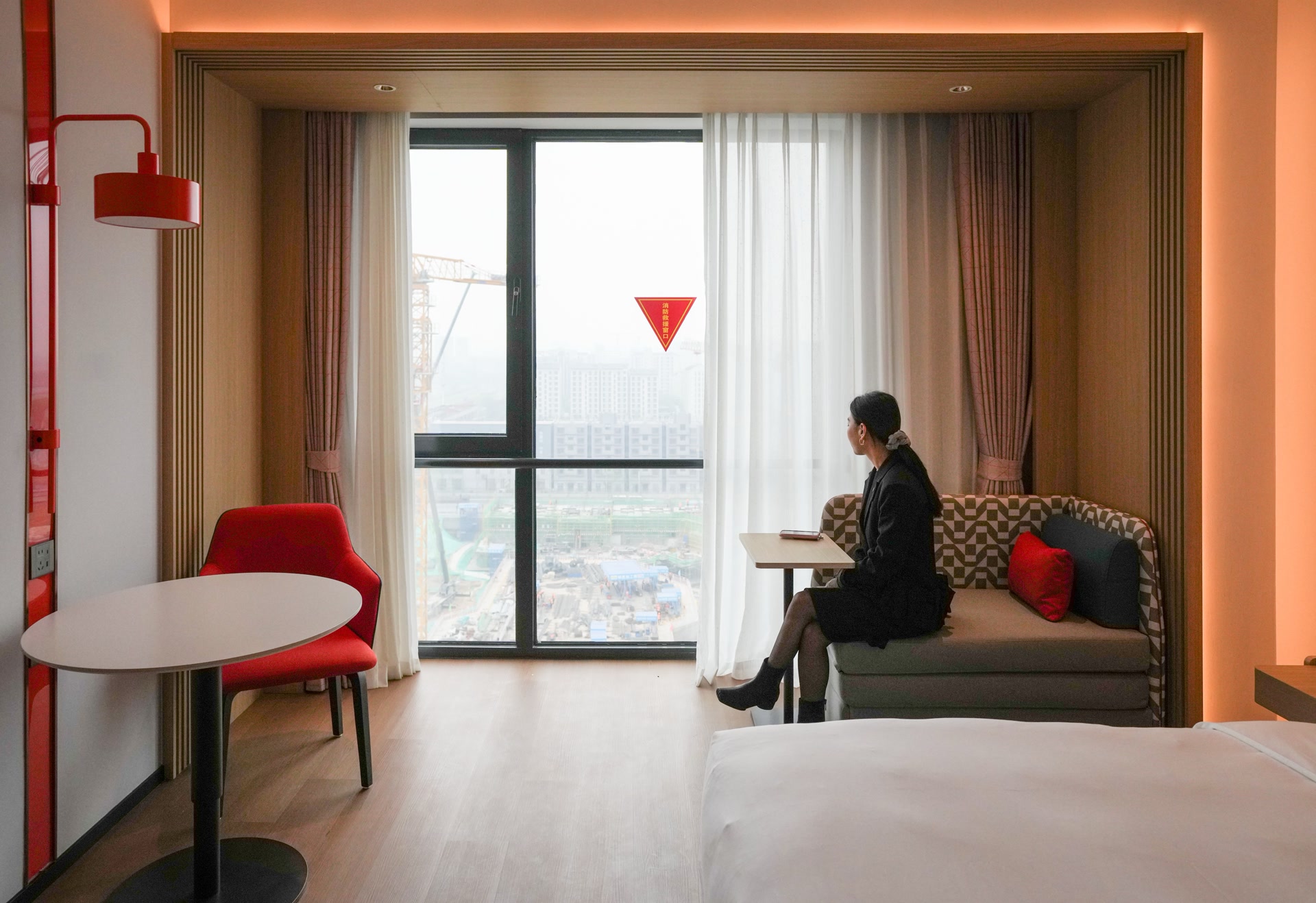 据了解,这家酒店共有378间空间灵活简约的客房及套房,房量远超品牌常规门店配置。考虑到通州文旅和亲子客群的叠加,房型配备可一键转换为加床的沙发,酒店还配备专业洗衣阁与健身设施。