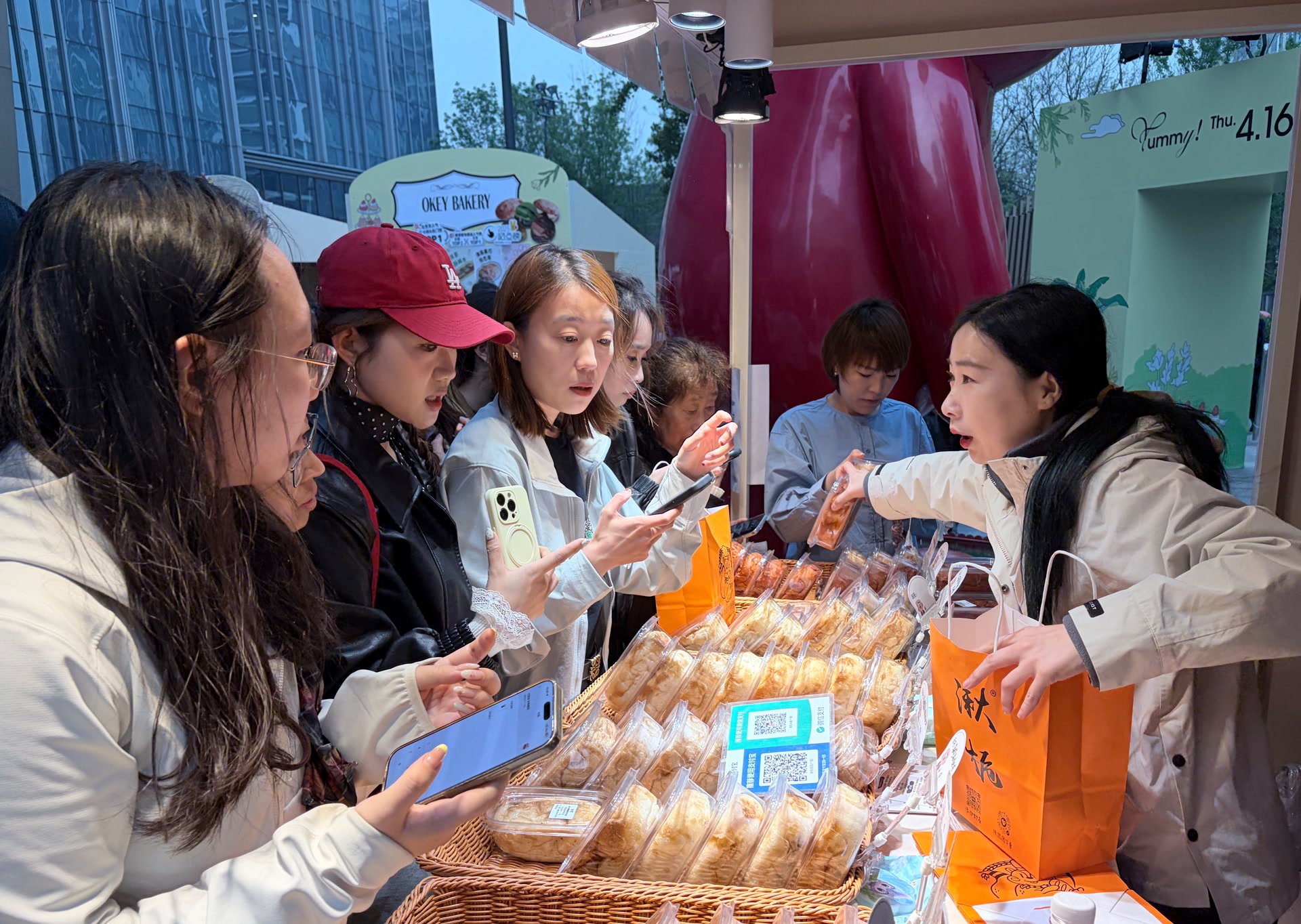 甜品节可谓是人头攒动,年轻人们从四面八方赶来,选购自己心仪的甜品。