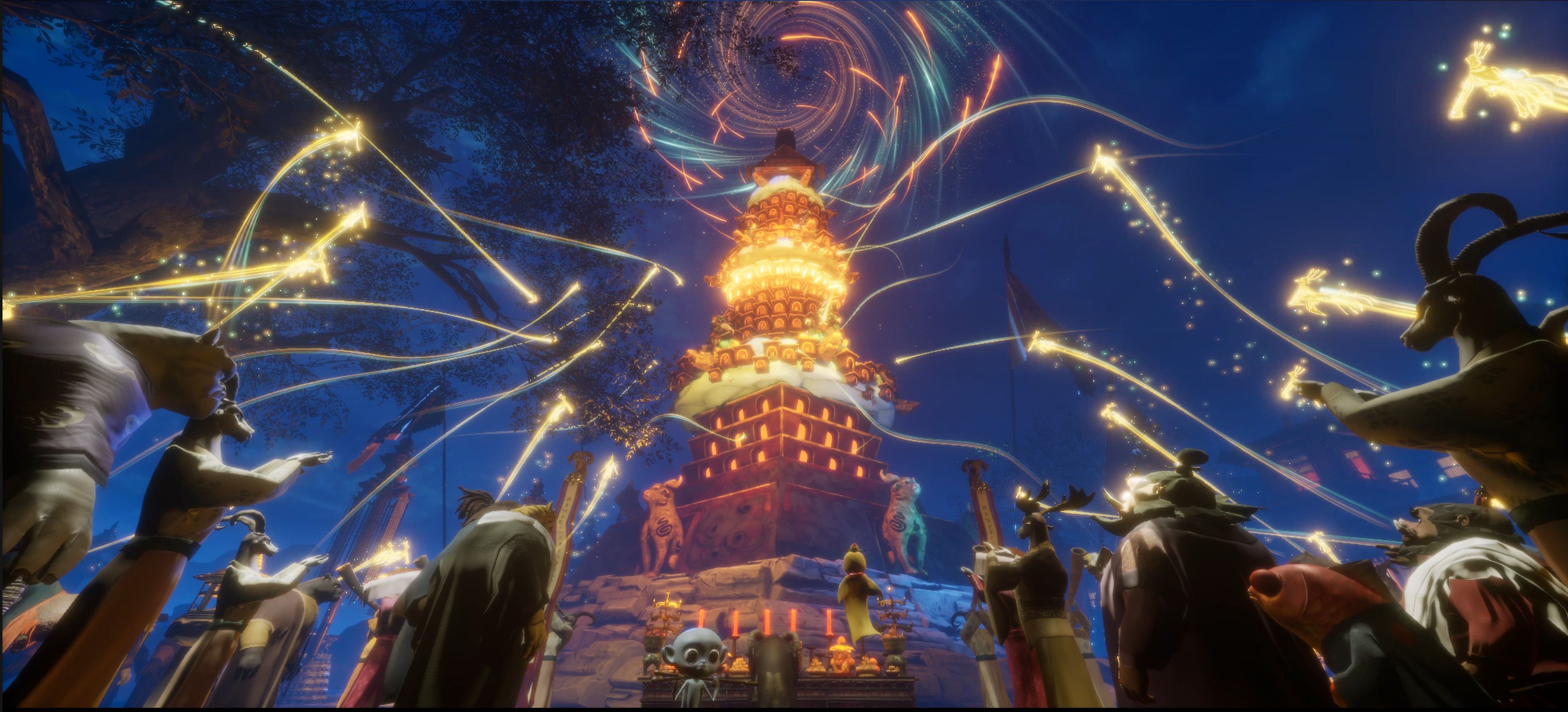 相关负责人介绍,在内容逻辑上,《大圣崛起之万妖神游》彻底跳出了早期XR作品作为“电影宣发赠品”或“缩减版剪辑”的传统定位。工作室在立项之初便确立了“平行衍生、异质互补”的创作范式:XR内容并非对电影桥段的二次复刻,而是利用XR特有的空间具身感,精准补全大银幕视觉边缘的世界观缝隙。例如项目中独有的“万妖镇祭祖大典”,在电影中或许只是叙事掠影,但在XR语境下,它被构建成一个承载情感驻足与深度交互的核心场域。