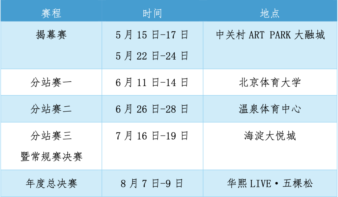 注:如遇天气原因或者特殊情况,比赛向后顺延,具体赛程信息请关注组委会消息。