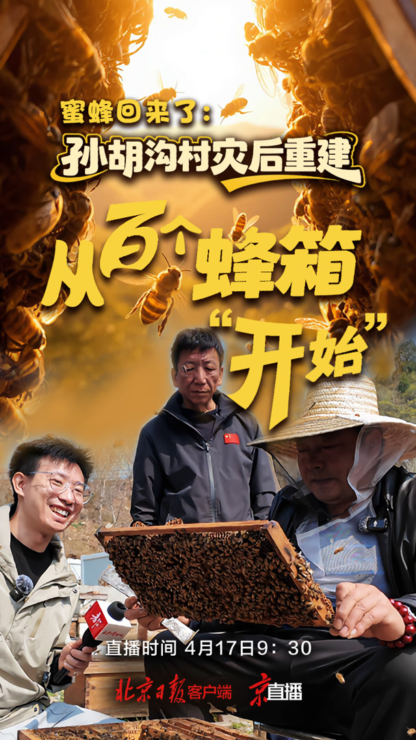 如今,洪水退去后的第一个春天,山杏花如约开放。4月17日上午9:30,京直播记者重返孙胡沟村,跟随现任村支书孙桂起一路探访。我们将走进村集体养蜂场——那是尹春燕书记生前为村子引来的“甜蜜产业”,如今约百箱蜜蜂正处于春繁期,蜂箱也比受灾前多了不少。现场,养蜂人将带记者亲手体验“开蜂箱”,看看蜜蜂们一个冬天养得怎么样。从蜂场一路往南走,沿途的老年驿站、护路坝、在建的新居……大约9个月里,小山村到底经历了什么?又变成了什么样?