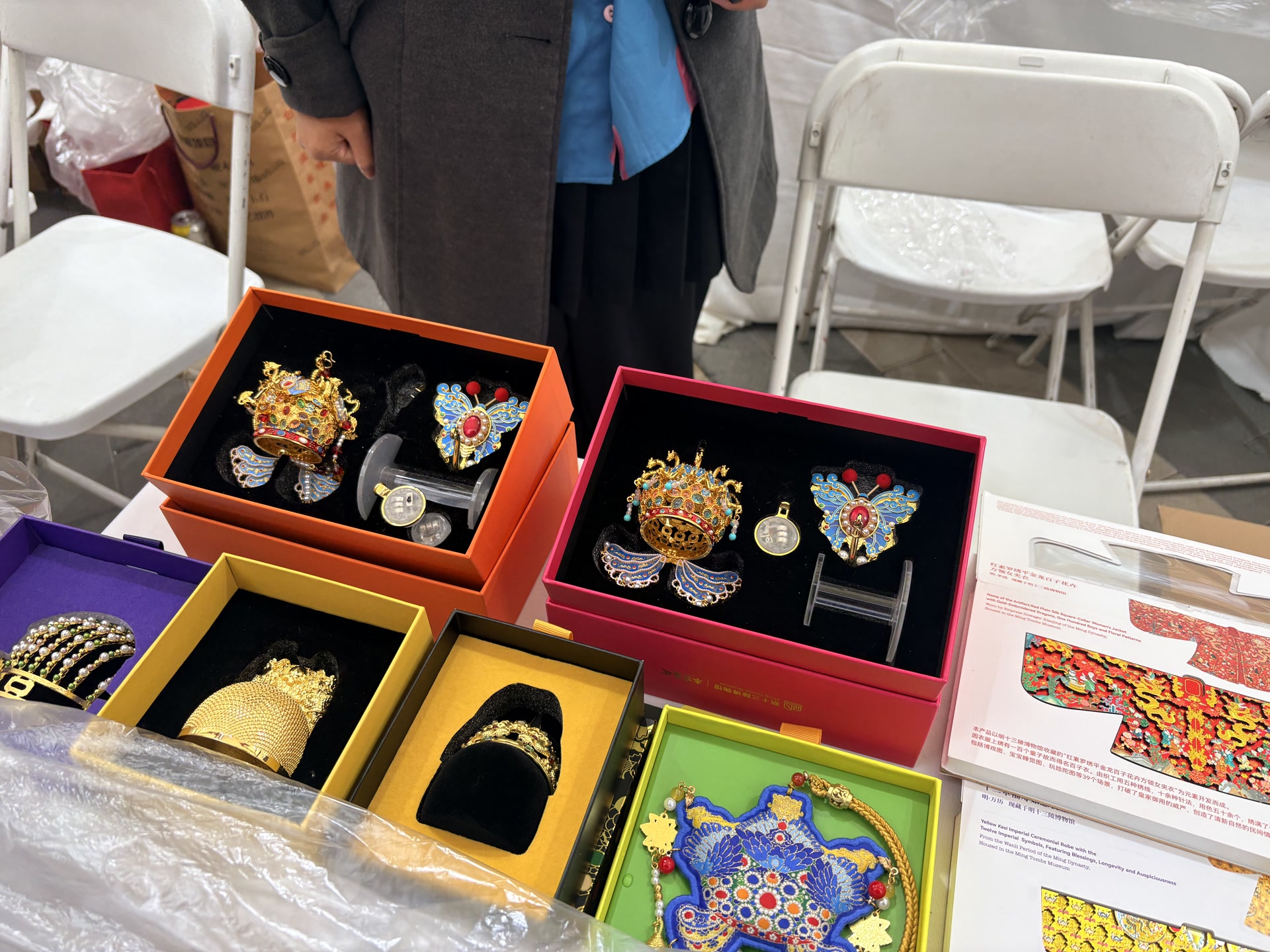 走进市集,才知道如今的文博文创不仅设计精巧,工艺精湛,更是富含巧思。昌平文旅集团带来的朝冠、凤冠冰箱贴已是精致,明十三陵博物馆则把凤冠做成了更精美的香囊摆件,北京古代建筑博物馆的文创展台,不仅有人们熟知的藻井冰箱贴,还把先农坛的庆成宫取吉祥寓意,做成了宫灯可以点亮的冰箱贴。
