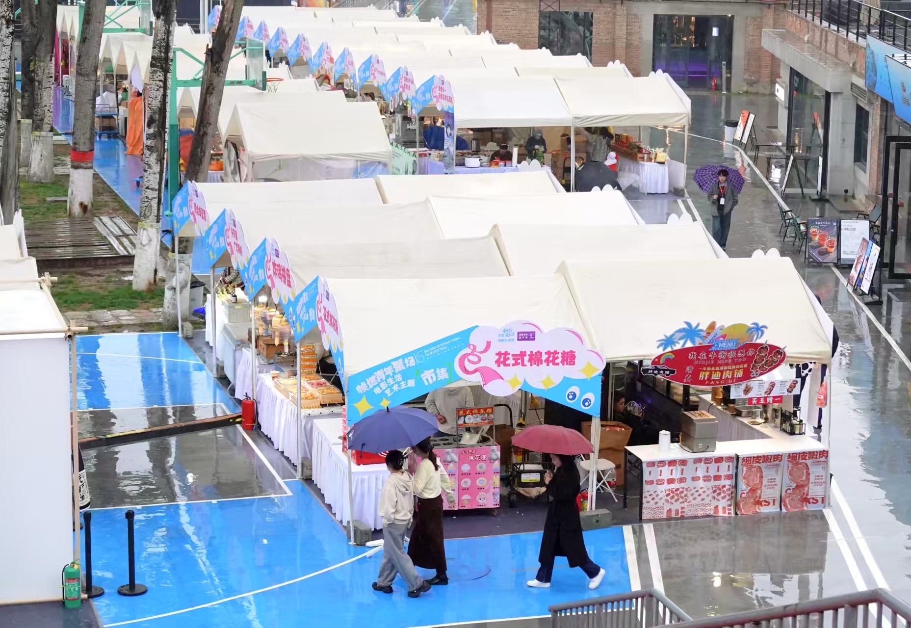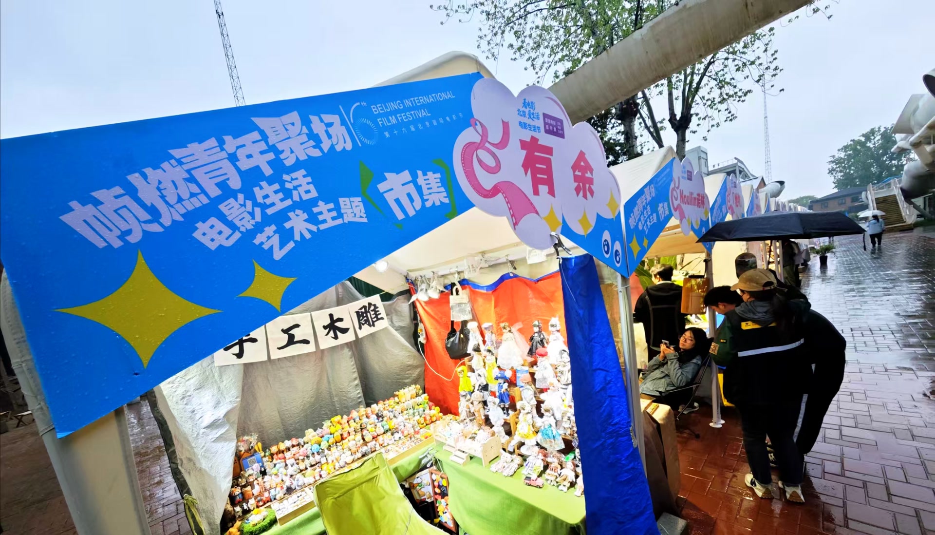 4月16日,第十六届北京国际电影节在细雨蒙蒙中拉开帷幕。作为本届北影节的重磅活动之一,位于郎园Station园区的“帧燃青年聚场电影生活艺术”主题市集也在首日迎客。市集涵盖文博文创、电影生活艺术、美食手作等多个板块,临坝河与将府公园而设,雨水洗刷后的空气格外清润,游客穿梭于琳琅满目的摊位之间,举目青翠,撑开的各色雨伞宛如一朵朵移动的花。