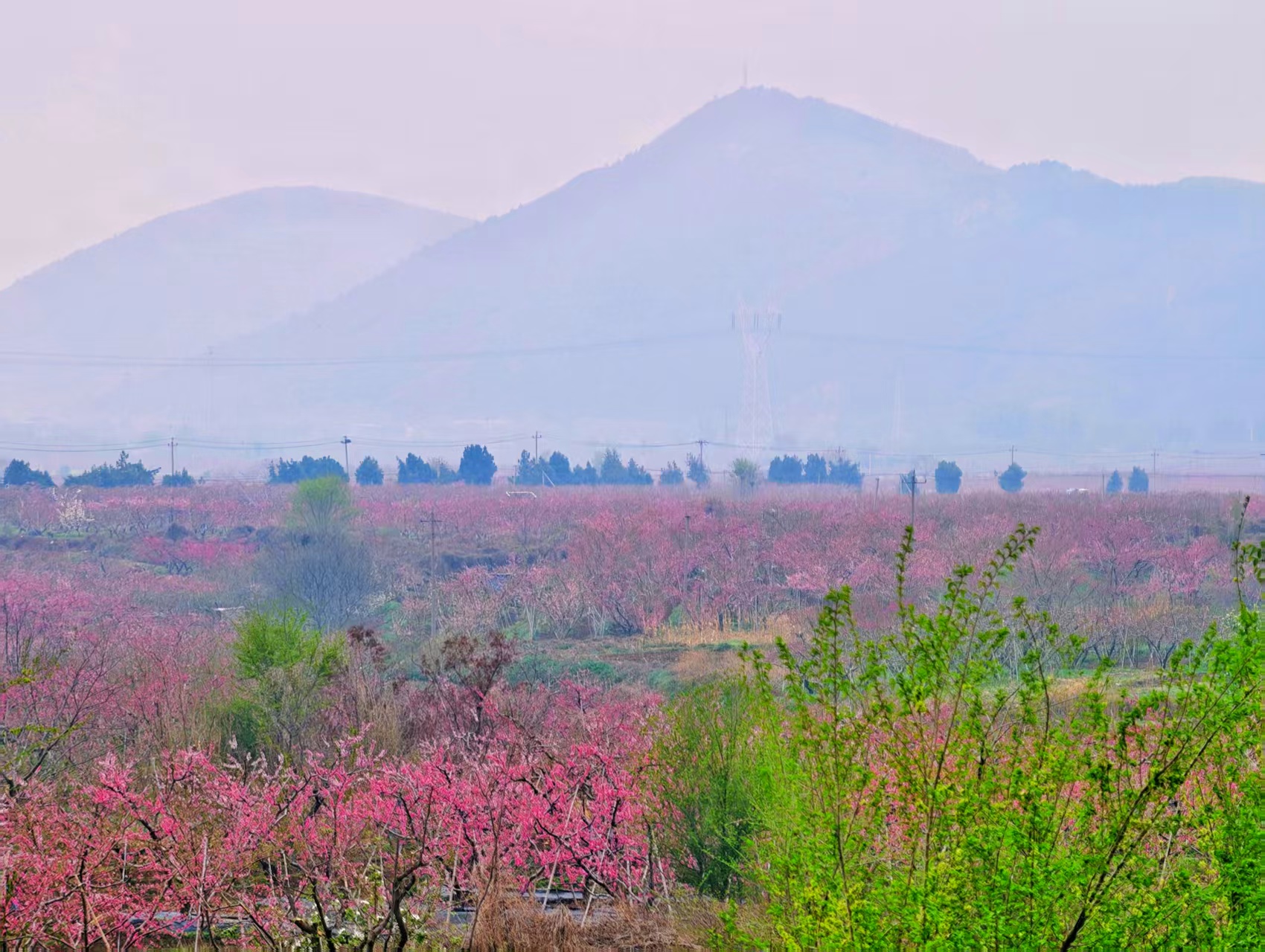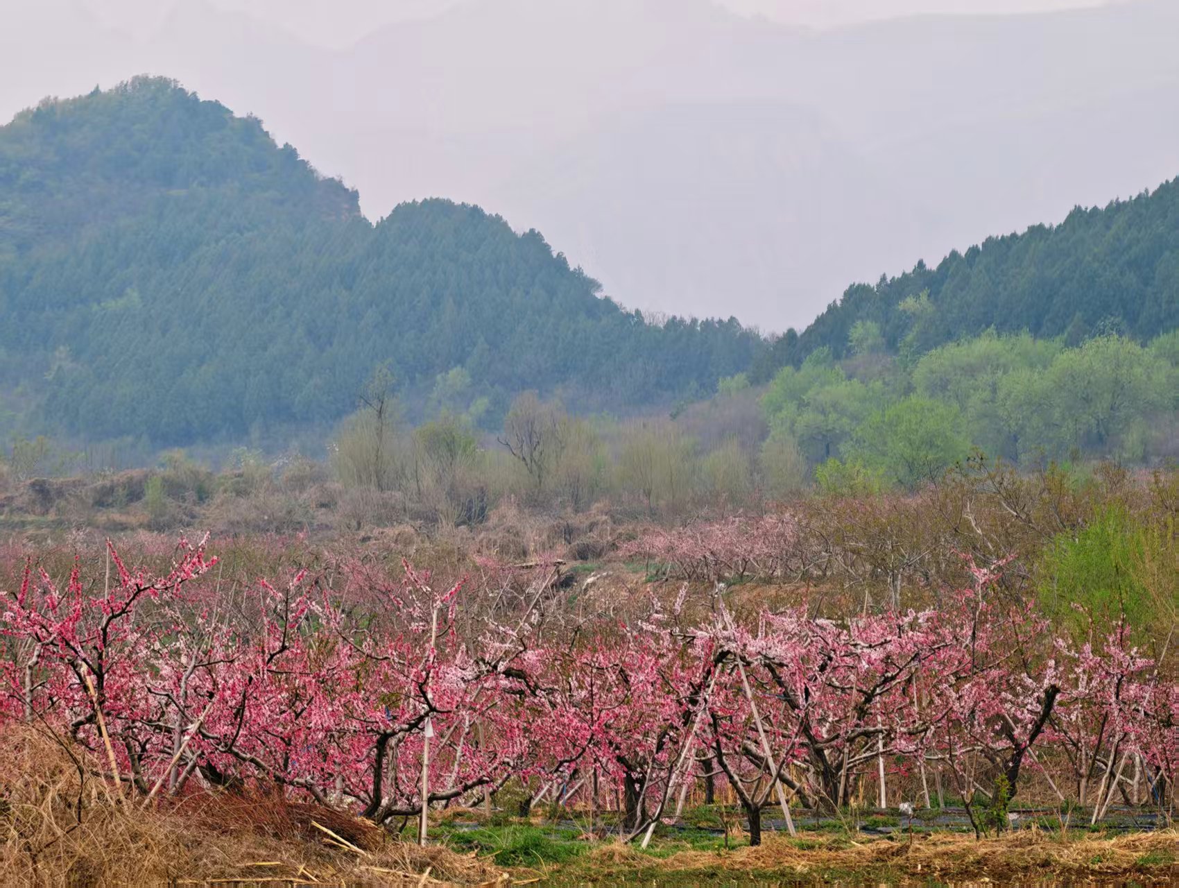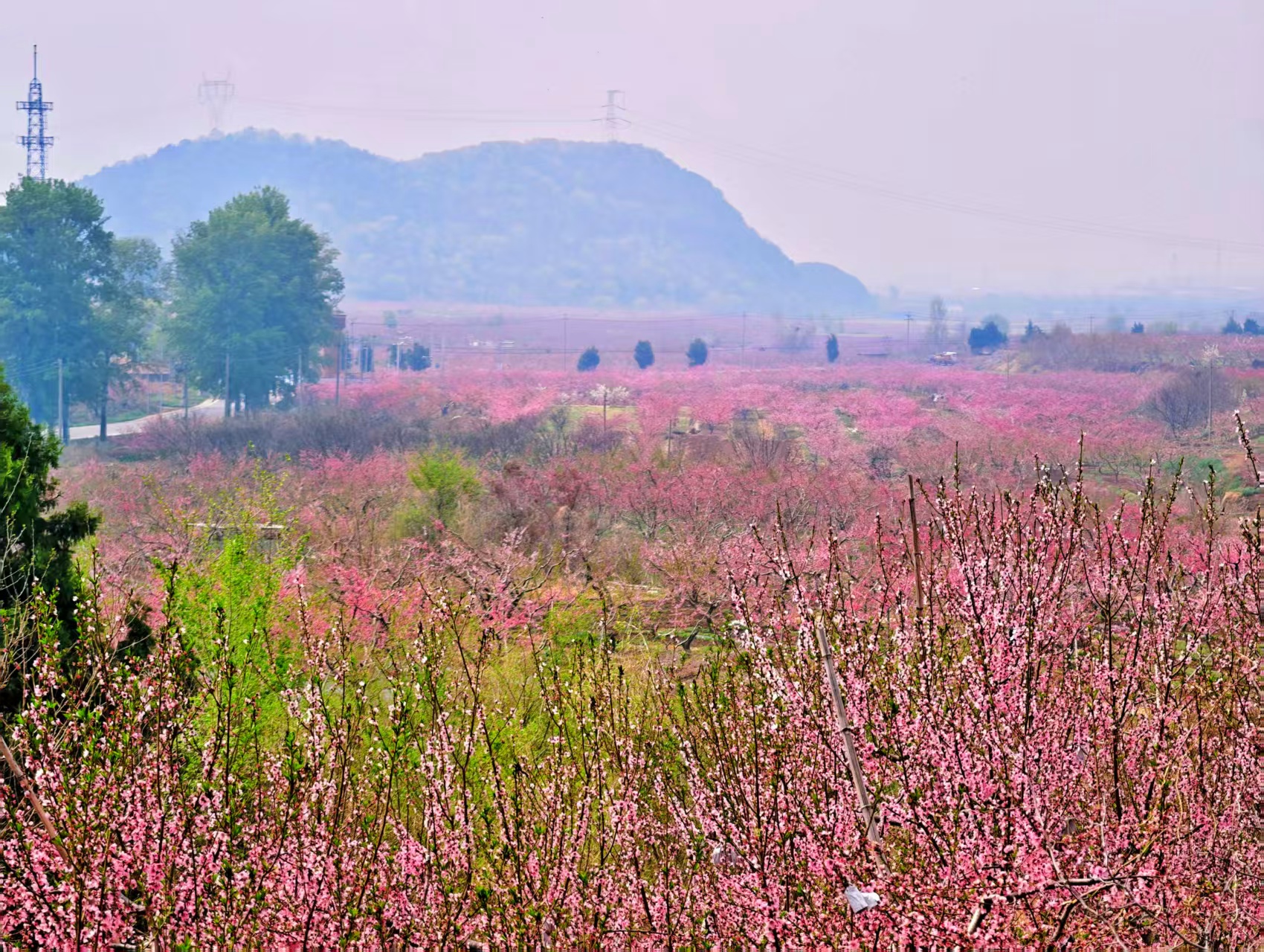 平谷雨后初晴,千亩桃花开成了粉色仙境