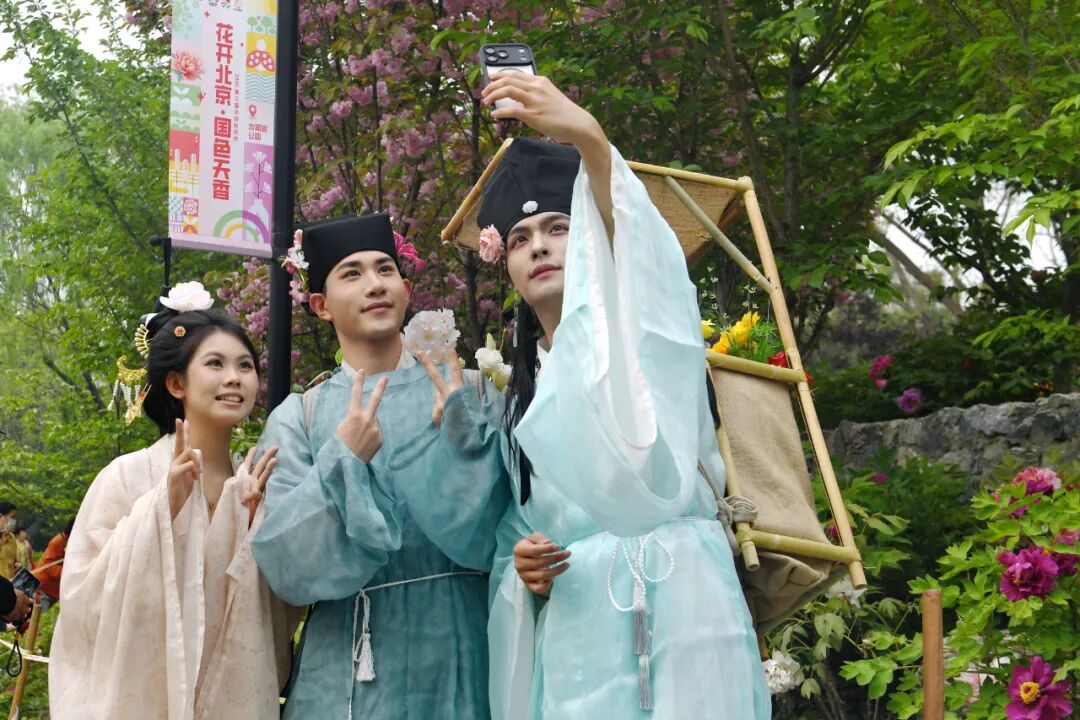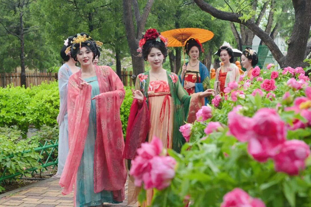 本届牡丹节不仅有花香,还融合传统文化与现代科技,多元活动已就位,让赏花体验更具新意。园内特别设置了NPC沉浸式互动打卡体验点,由北京服装学院美术学院的学生扮演古风使者,引导游客对诗答题、投壶合影、闯关集章,集齐即可兑换春日好礼。宫锦台打造牡丹花主题旅拍场景,游客可化身“花神”拍摄古风大片,沉浸式感受国风韵味。