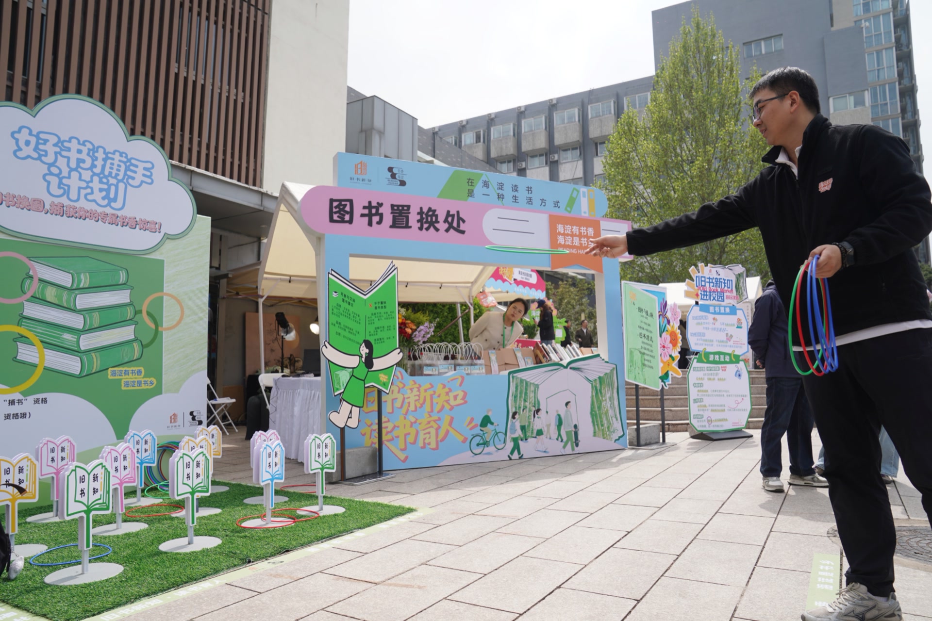 在旧书互动体验摊位,整合图书漂流、图书“植”换等多元玩法,以灵活多样的互动形式实现旧书循环置换,让闲置书籍在趣味参与中焕发新生。