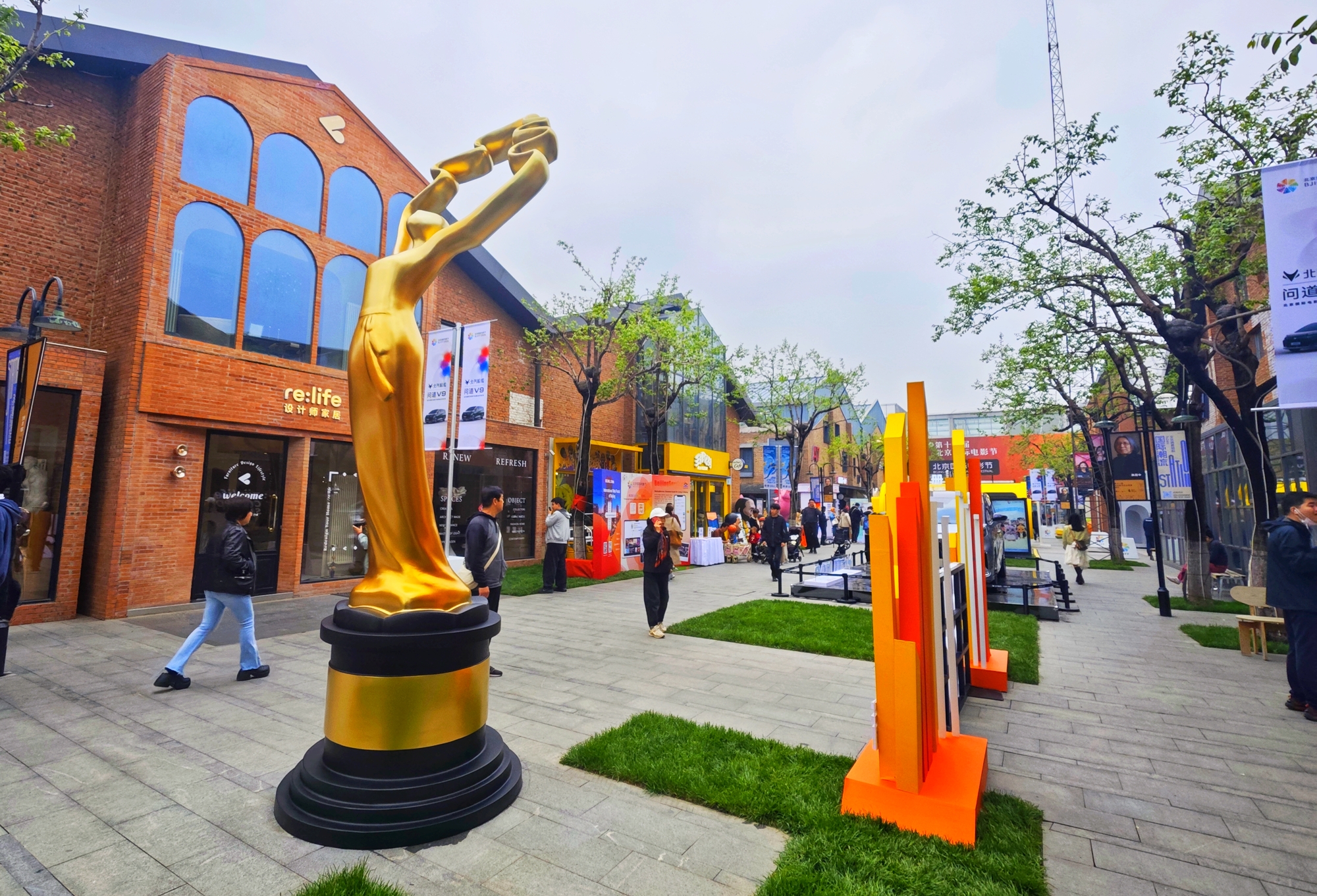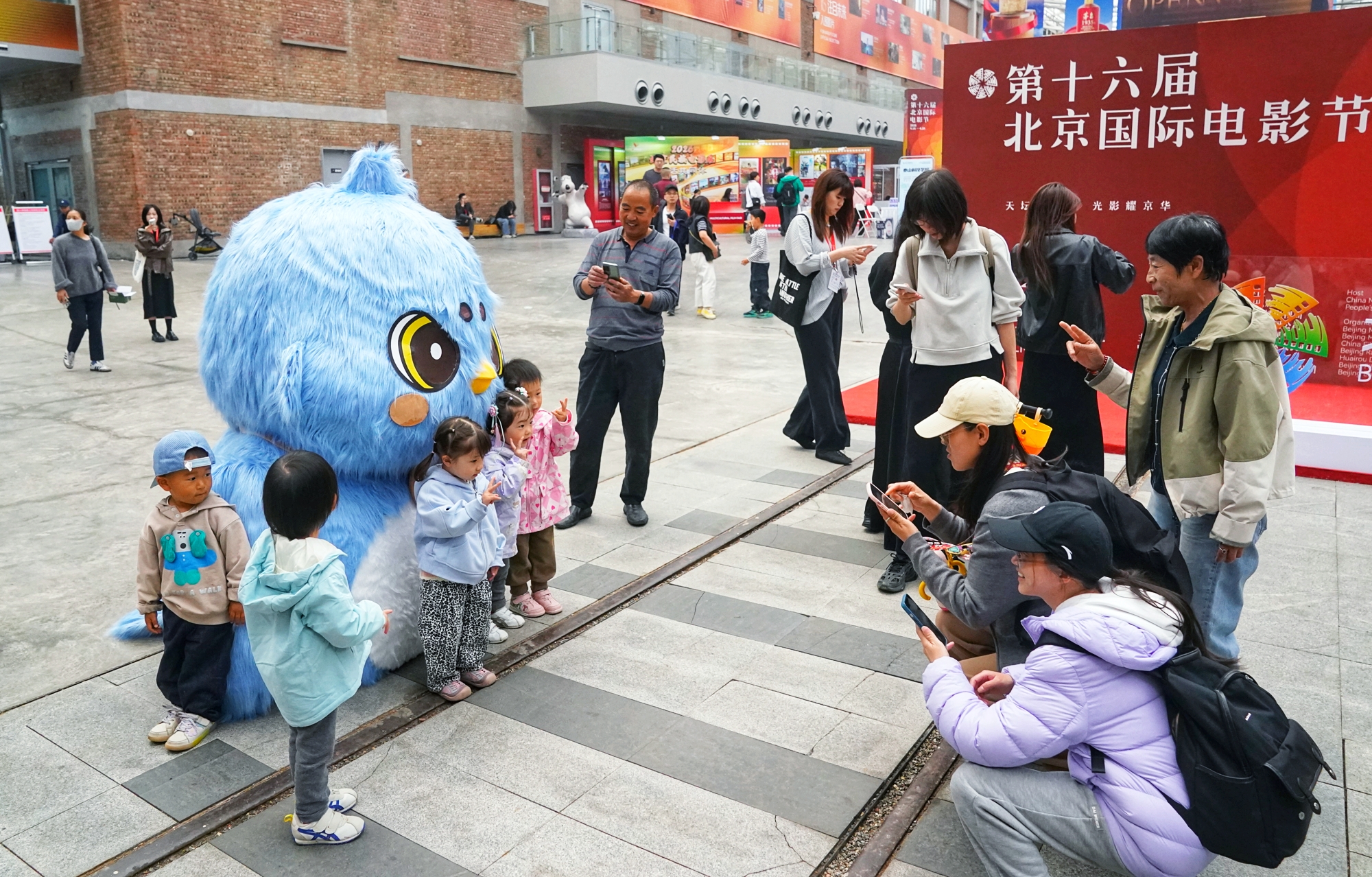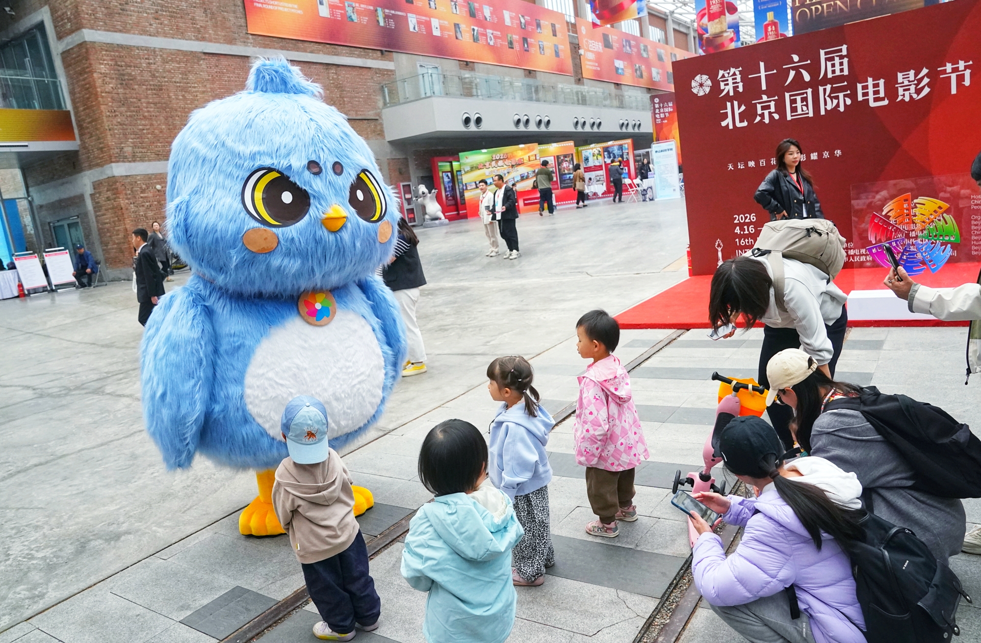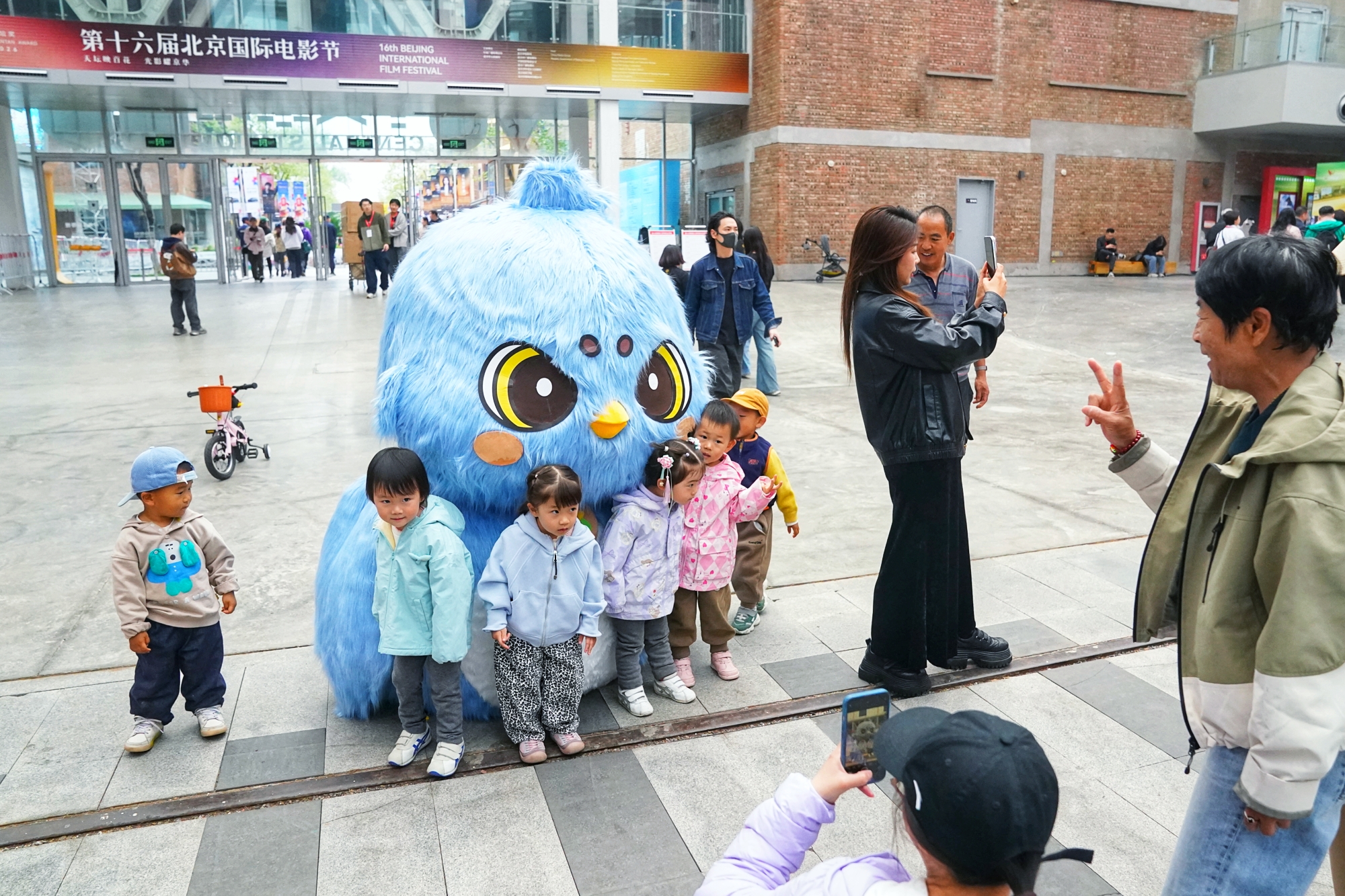 4月18日,第十六届北京国际电影节吉祥物“燕喜儿”亮相主会场郎园·Station街区,引来众多小朋友与市民驻足互动、合影留念。北影节红毯标识与奖杯雕塑,烘托出浓厚的电影节氛围,燕喜儿以软萌形象传递光影热情,为春日北影节增添童趣暖意。