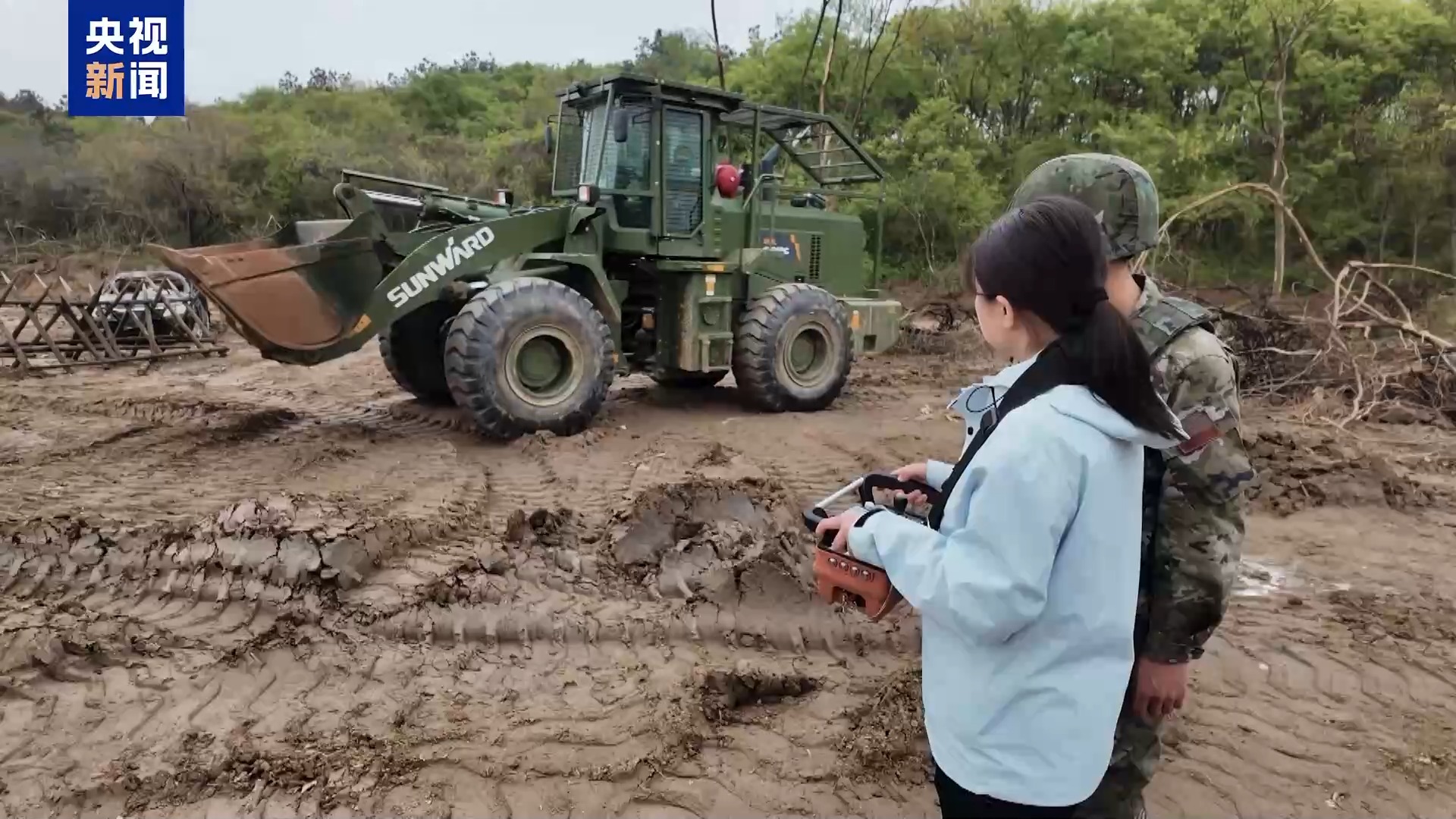 武警第二机动总队某支队 吴松:战时道路损毁,自然因素条件下的泥石流、山体滑坡导致道路中断等,开辟道路是第一个难点。尤其是人工操作的时候,人员进入场地,可能出现二次塌方、侧翻的情况。使用无人装备,可以在安全区域进行远程操控,从而实现装备代替人员进入危险场地。