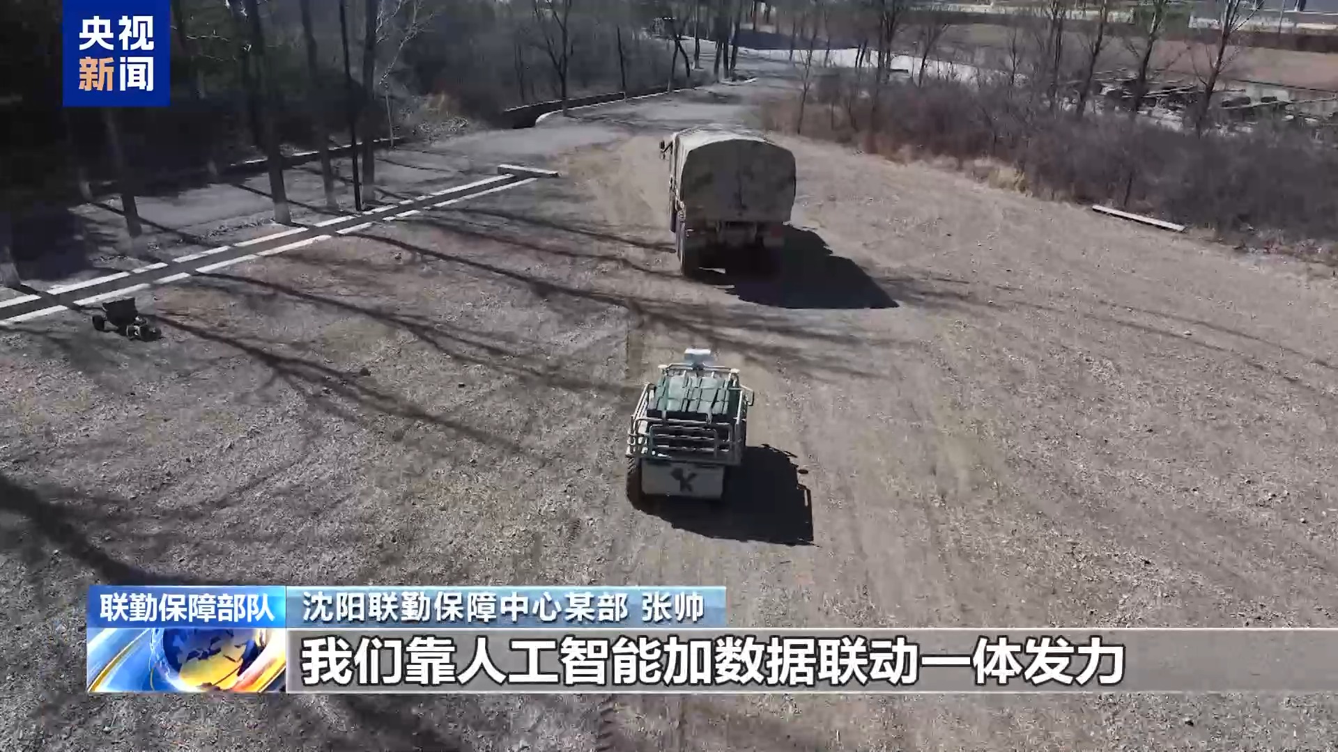 沈阳联勤保障中心某部 潘易国:我们采取有人无人相结合的方式,摸索出了智能装备在多领域协同、突发情况处置等场景下的实用做法。下一步,我们要继续把“人工智能+联勤保障”模式,真正用到实战化训练当中,让我们的训练更贴近战场实际,更符合未来战争的需要。