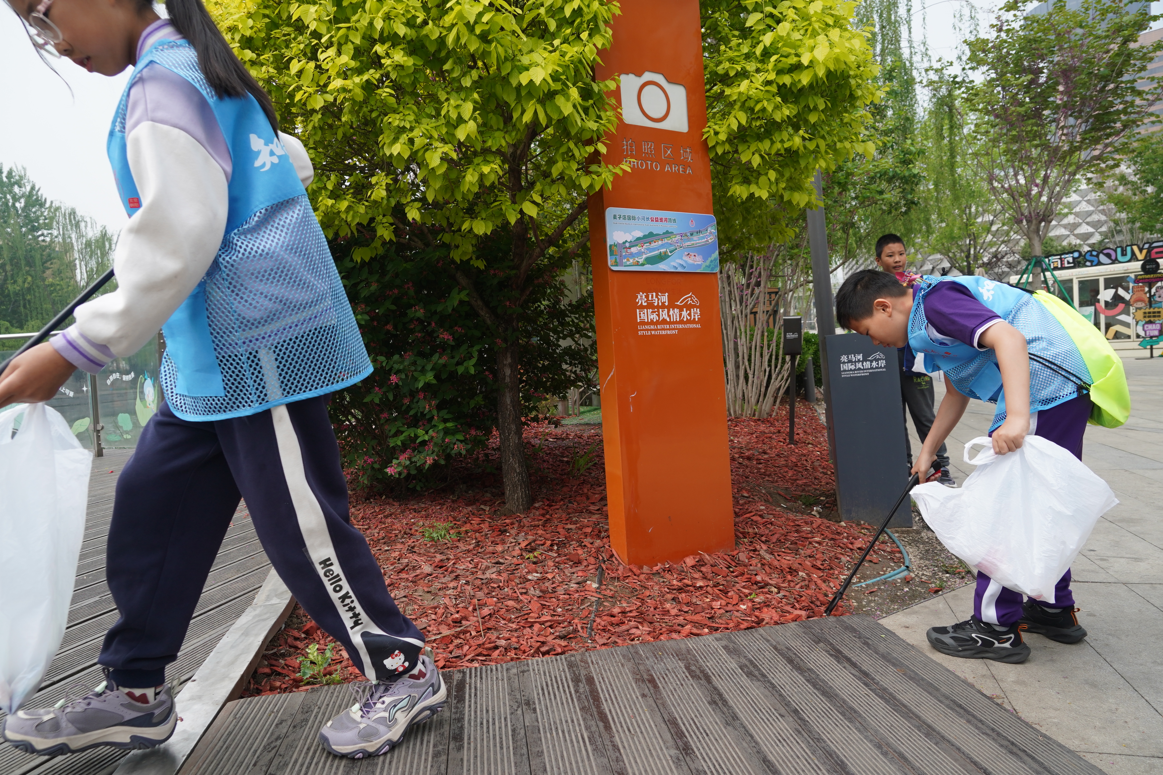 活动中,参与者沿着亮马河开展5公里公益徒步,沿途开展垃圾捡拾、垃圾分类宣传等环保行动。大家手持垃圾袋与清洁工具,俯身清理沿岸杂物,用脚步丈量河岸,用双手为河道“美颜”。