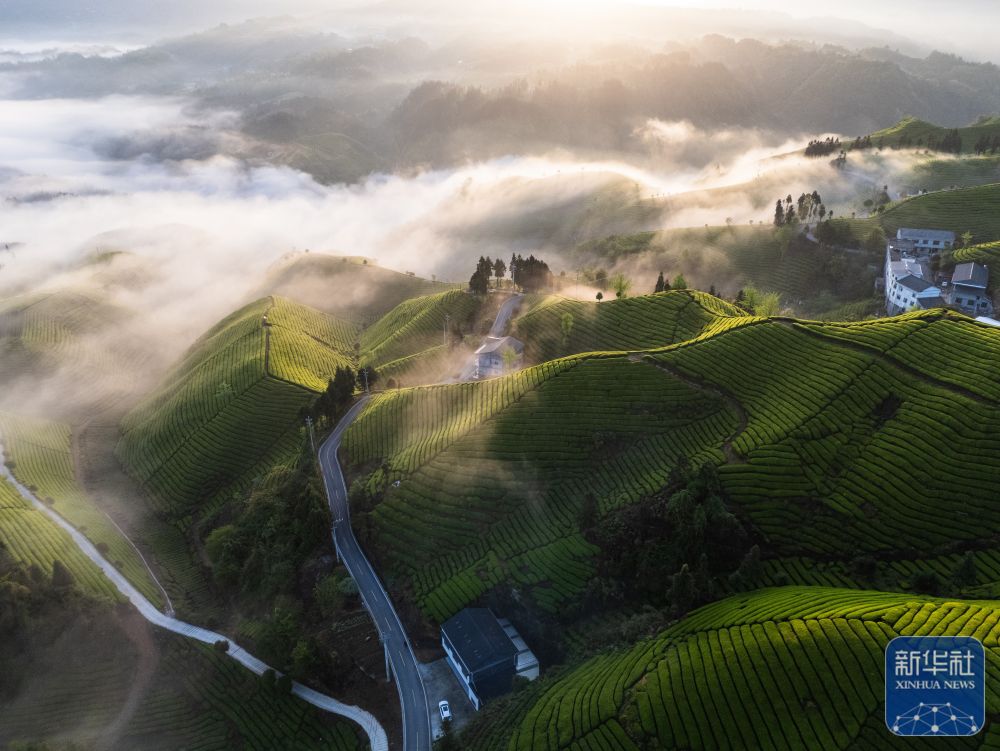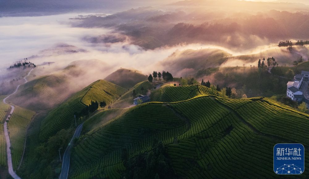 ↑ 4月18日在湖北省鹤峰县走马镇升子村拍摄的木耳山茶园(无人机照片)。新华社发(覃涛摄)