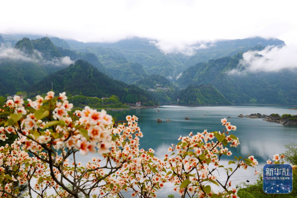 ↑ 4月15日,油桐花掩映着重庆市黔江区小南海景区堰塞湖一角。新华社发(杨敏摄)