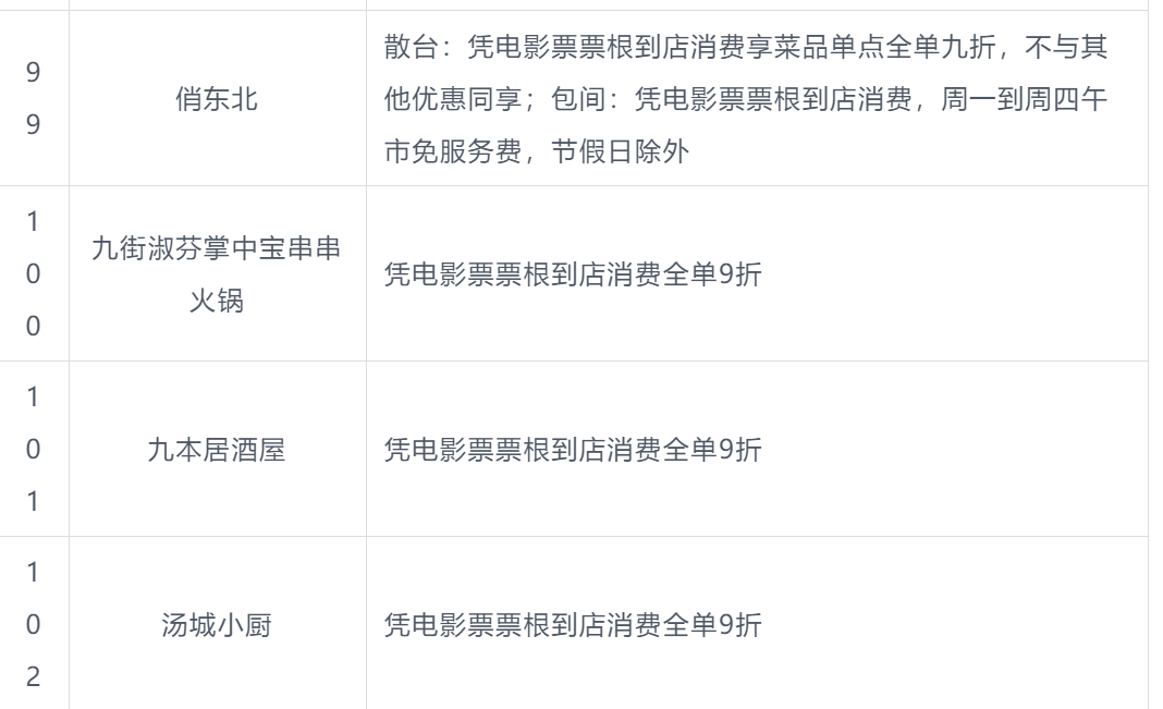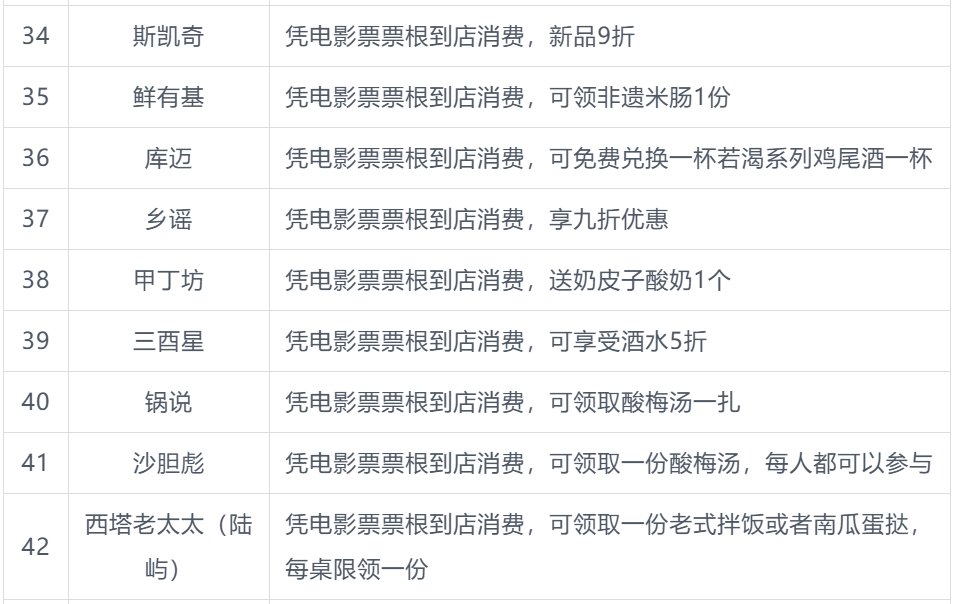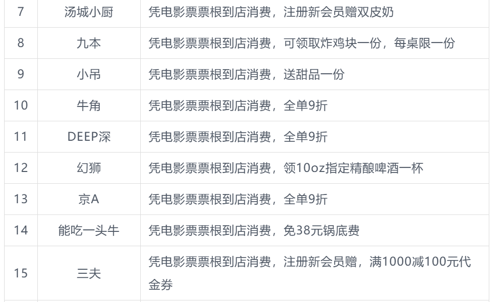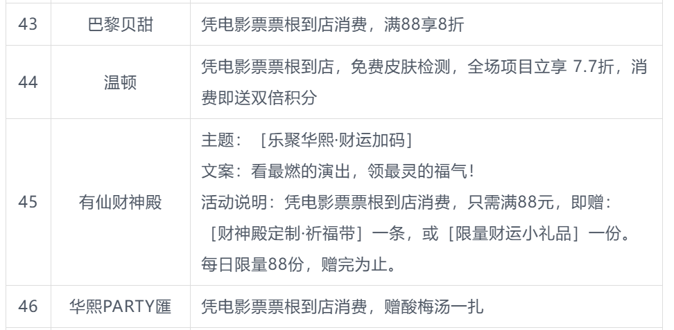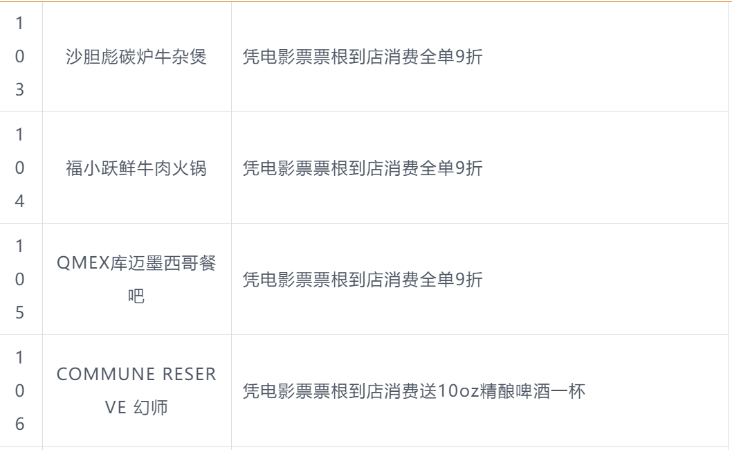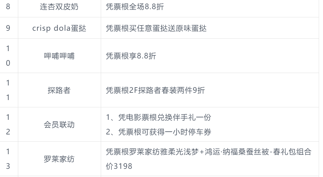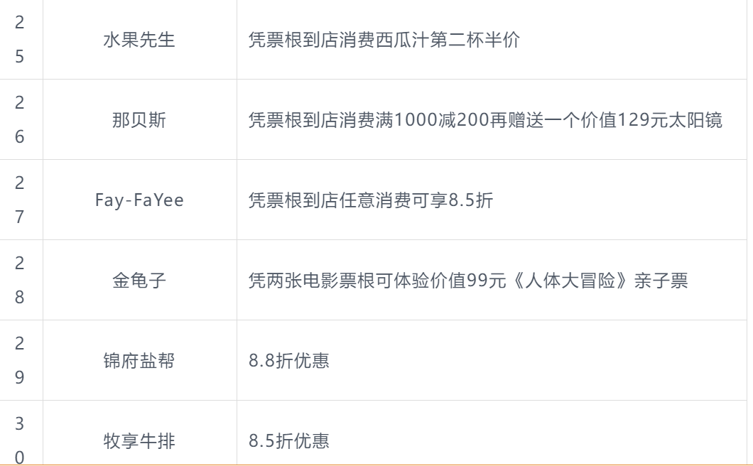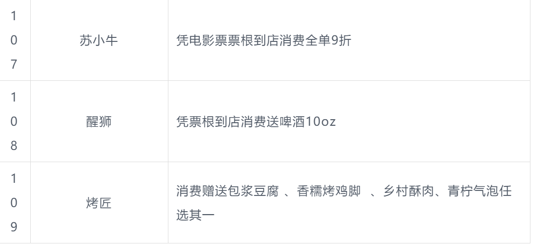 本次北影节票根联动活动商户名单