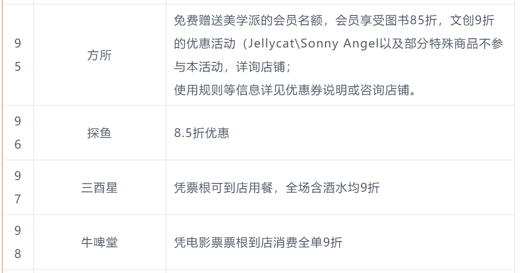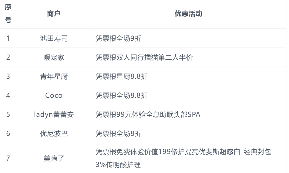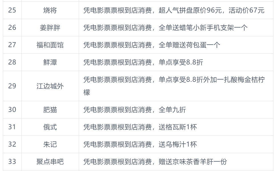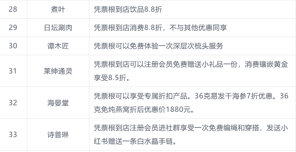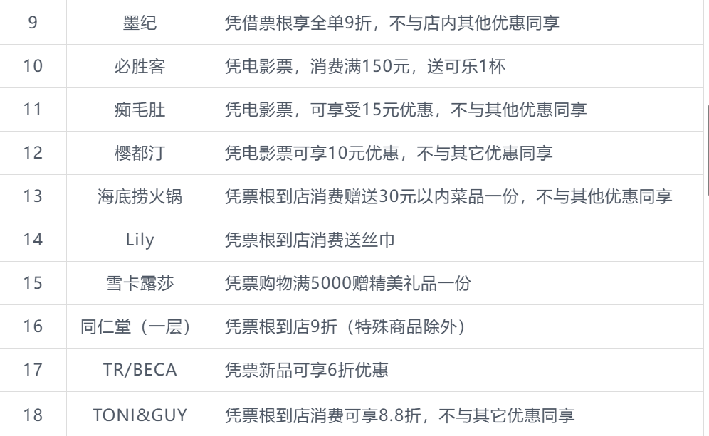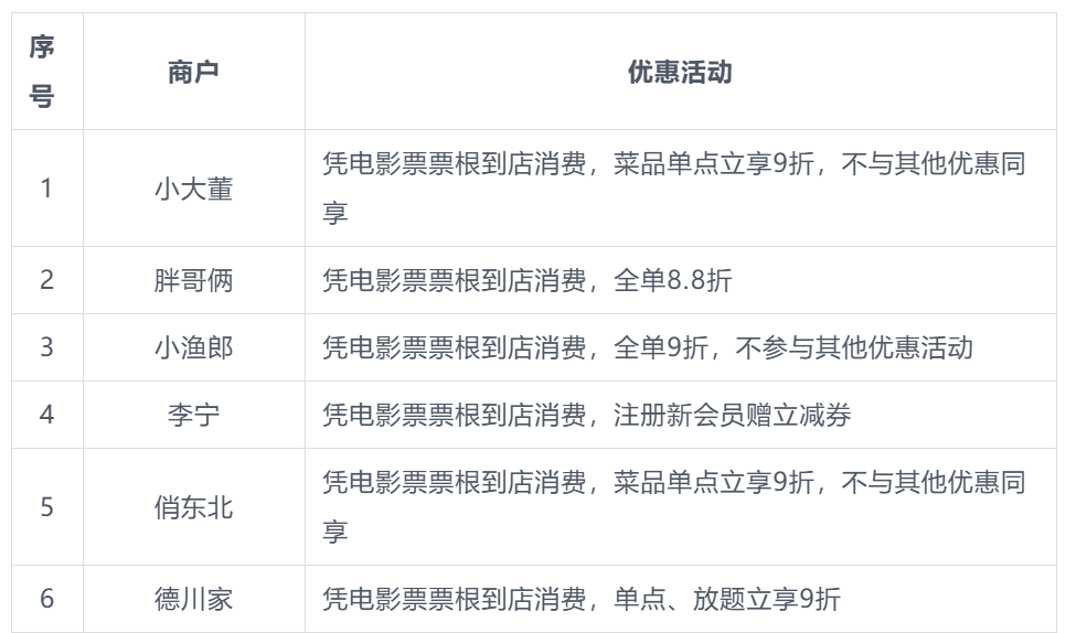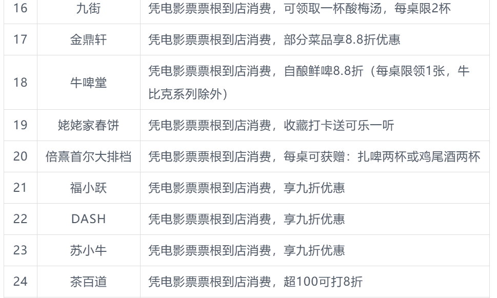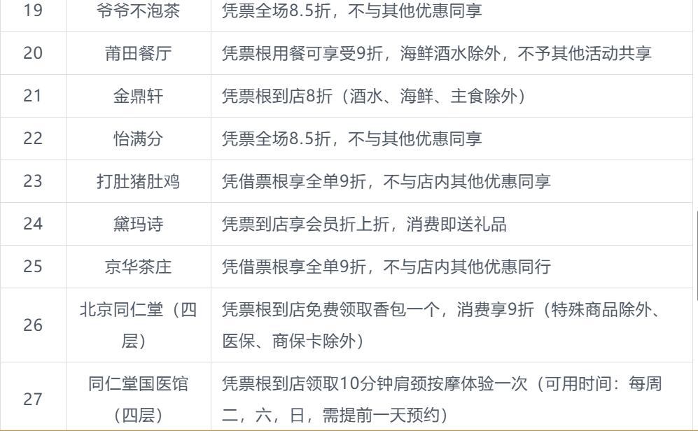 本次北影节票根联动活动商户名单