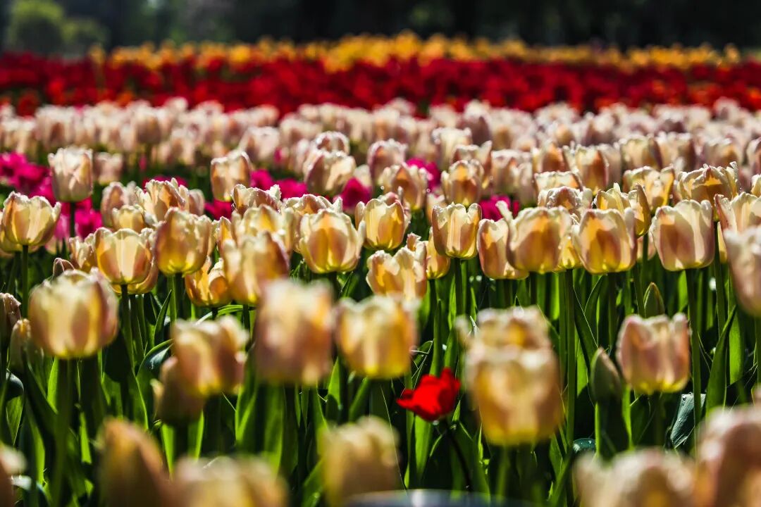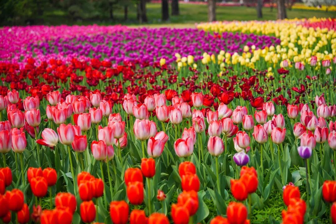 漫步郁金香花海,缤纷景致尽收眼底