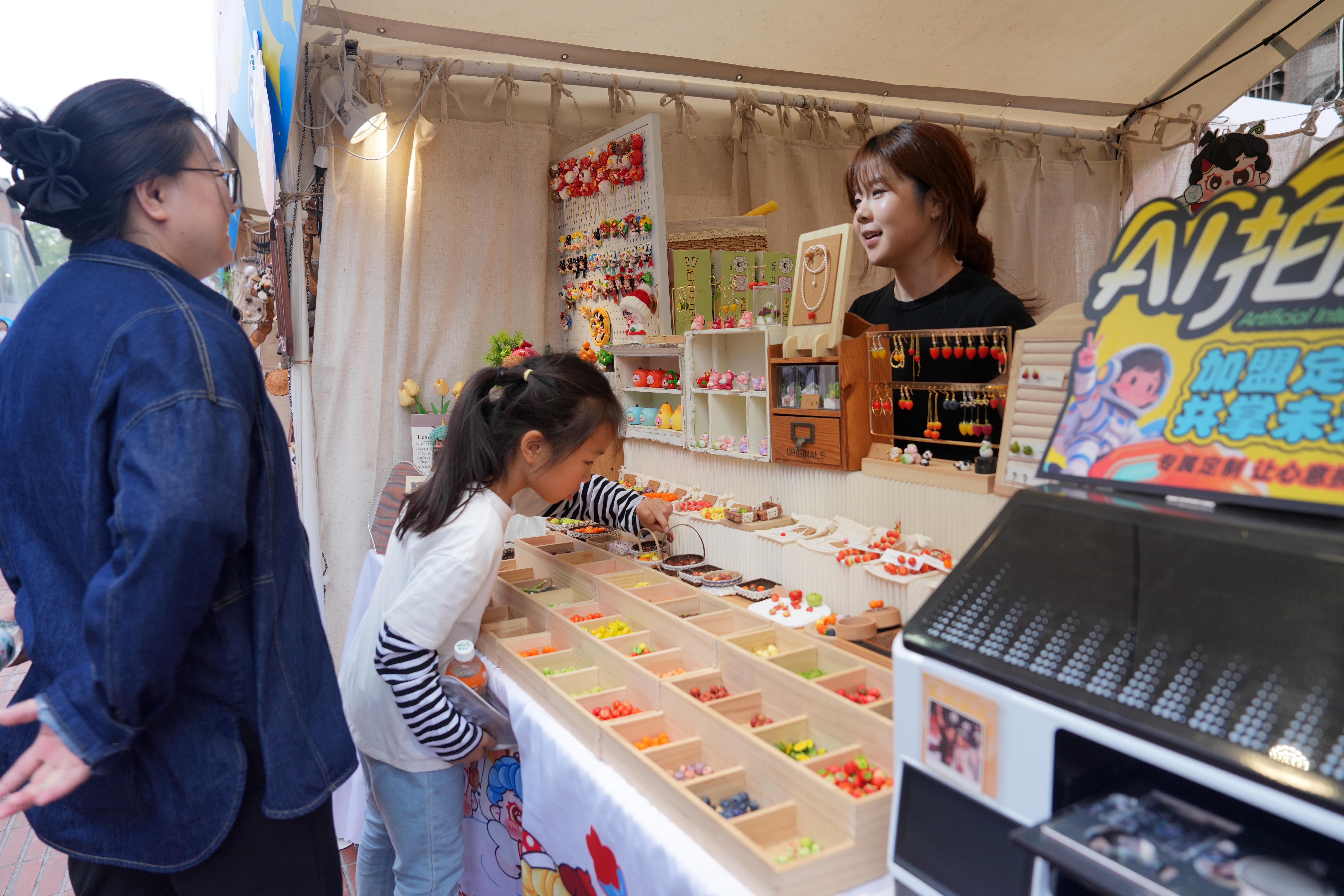 今年的主题市集全面升级,覆盖不同人群的多元需求。手作街区汇聚了78家以手工艺为特色的摊位,树雕工艺品、二手玩偶、仿点翠饰品等产品做工精致,让人爱不释手;猫眼、王府井书店、博纳院线、中国邮政、正阳书局等44个知名文化品牌汇聚在品牌街区和光影街区,影迷能在此淘到心心念念的文创周边,也为影视IP的长尾价值提供了全新出口;博物文创区更集结30余家北京文博场馆,带来爆款非遗文创、特色文物周边,在博物馆排队买不到的文创产品,能在这里轻松买到;逛累了以后,坝河边的美食街区集合了44家不同餐饮商家,手工披萨、精酿啤酒、老式爆米花等各色美食让人食指大动,游客可以边吹风边大快朵颐……