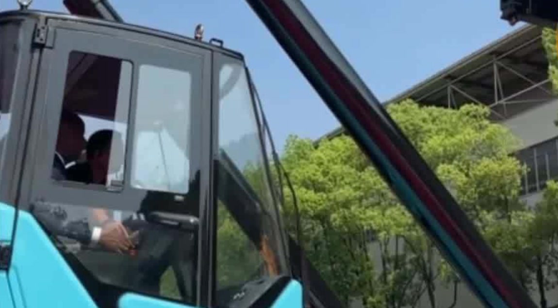 据新华社消息,4月18日,莫桑比克总统丹尼尔·查波参观位于湖南长沙的三一星沙产业园,对新能源产品十分感兴趣,并登上三一电动正面吊,在技术人员的指导下体验该设备的操作。