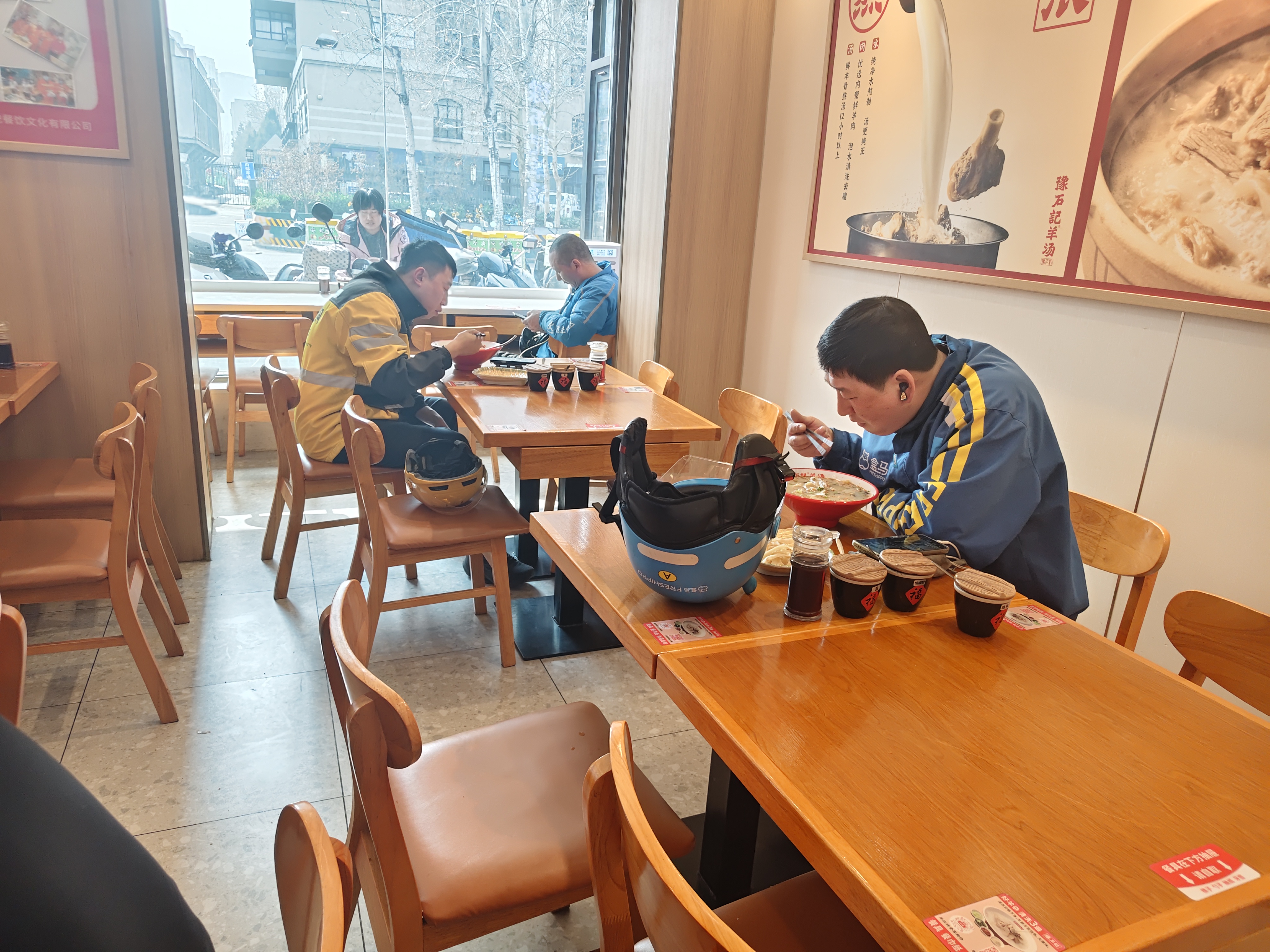 这份善意,从未停留在牌子上。去年冬天的清晨,这家羊汤馆刚开门,就有外卖小哥匆匆跑进来,语气急切:“老板,外边有位阿姨,看着挺冷的,好像没钱吃饭,不好意思进来。”