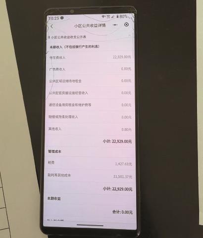 “零收益”的结果引发质疑。林先生介绍,尽管小区仅有一栋楼,但能够产生公共收益的资产并不少:“地面、地下大约各有30个车位,每个月都会产生租金,还有临时进出小区的车辆,也会按照每小时4元的标准收费。楼栋里有电梯,广告几乎没停过,一楼大堂还放着丰巢快递柜,必然也会产生场地租金。各项收入叠加,绝不可能是0元。”林先生通过小程序,仔细查询了历年的公共收益明细,发现“停车费”一栏上,每个季度都确有1万元至2万元不等的收益,但巧合的是,扣除税费及管理成本,每个季度恰好“归零”,公共收益账户内再无结余。