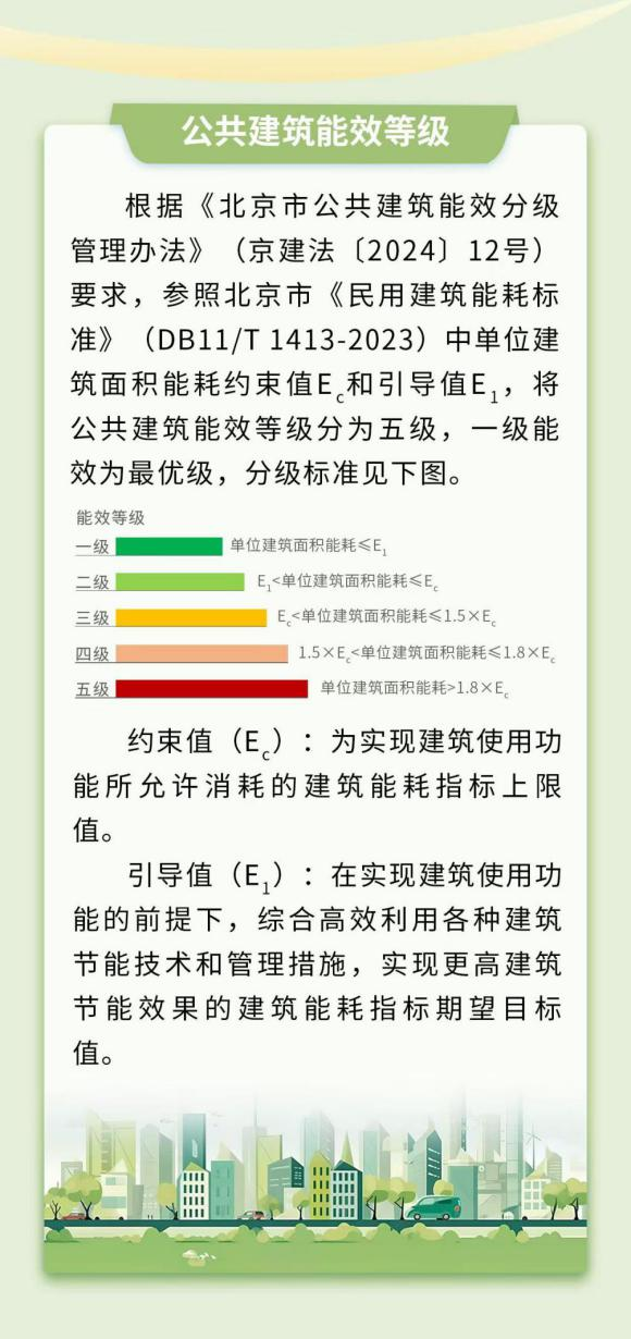 2024年,配套发布了《北京市公共建筑能效分级管理办法》,以建筑实际运行能耗数据为依据来推动建筑能耗管理。公共建筑能效分级创新管理机制使推动加强节能运行管理、公共建筑节能改造有了明确的量尺和抓手。