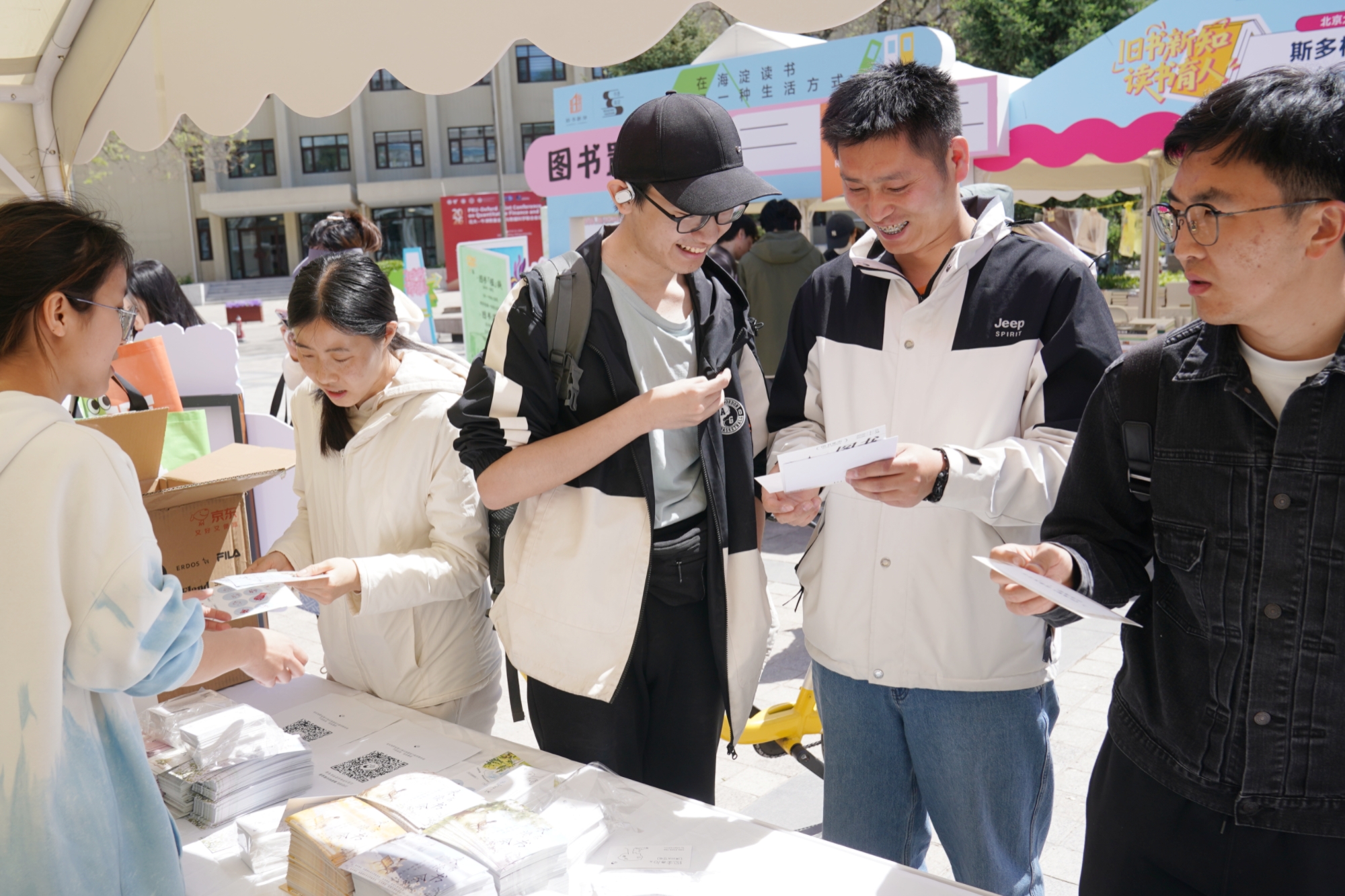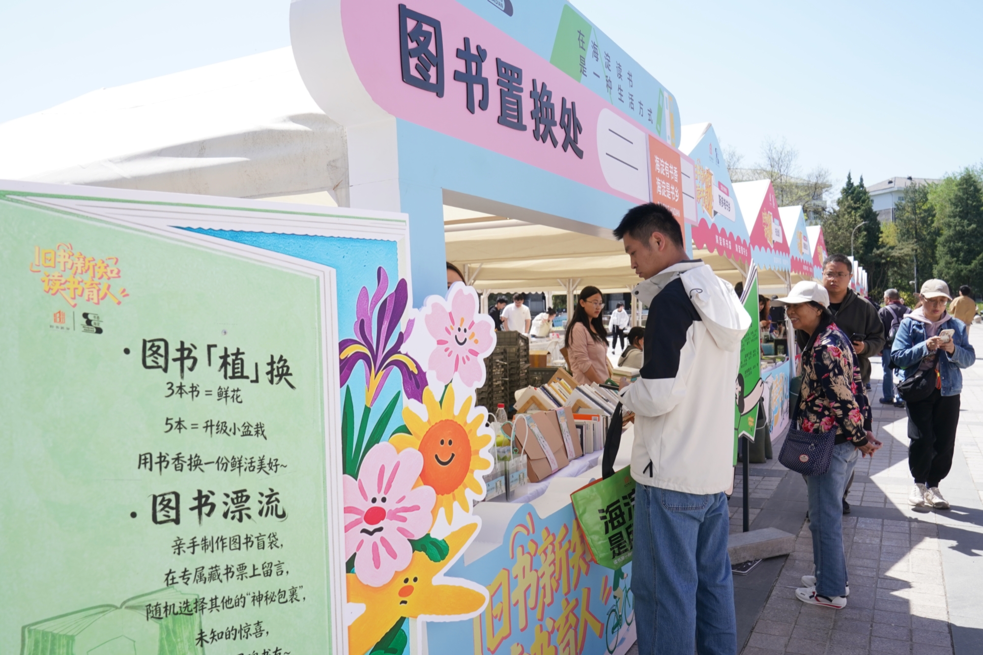 本次北大专场汇聚人民文学出版社、北京大学出版社、斯多格书乡20余家出版社、书店参与,结合校园特色设置四大主题摊位:学生专属摊位推出方言诗会、拼贴诗词工坊、古籍徽章制作工坊及阅读福利工坊,展现校园文化活力;图书展销区汇聚高校及优质出版社精品读物;海淀融媒“光影朋友圈”摊位搭建青年影像创作交流平台;旧书置换体验区整合图书漂流、以书换植、书籍套圈等环节,推动旧书绿色循环。