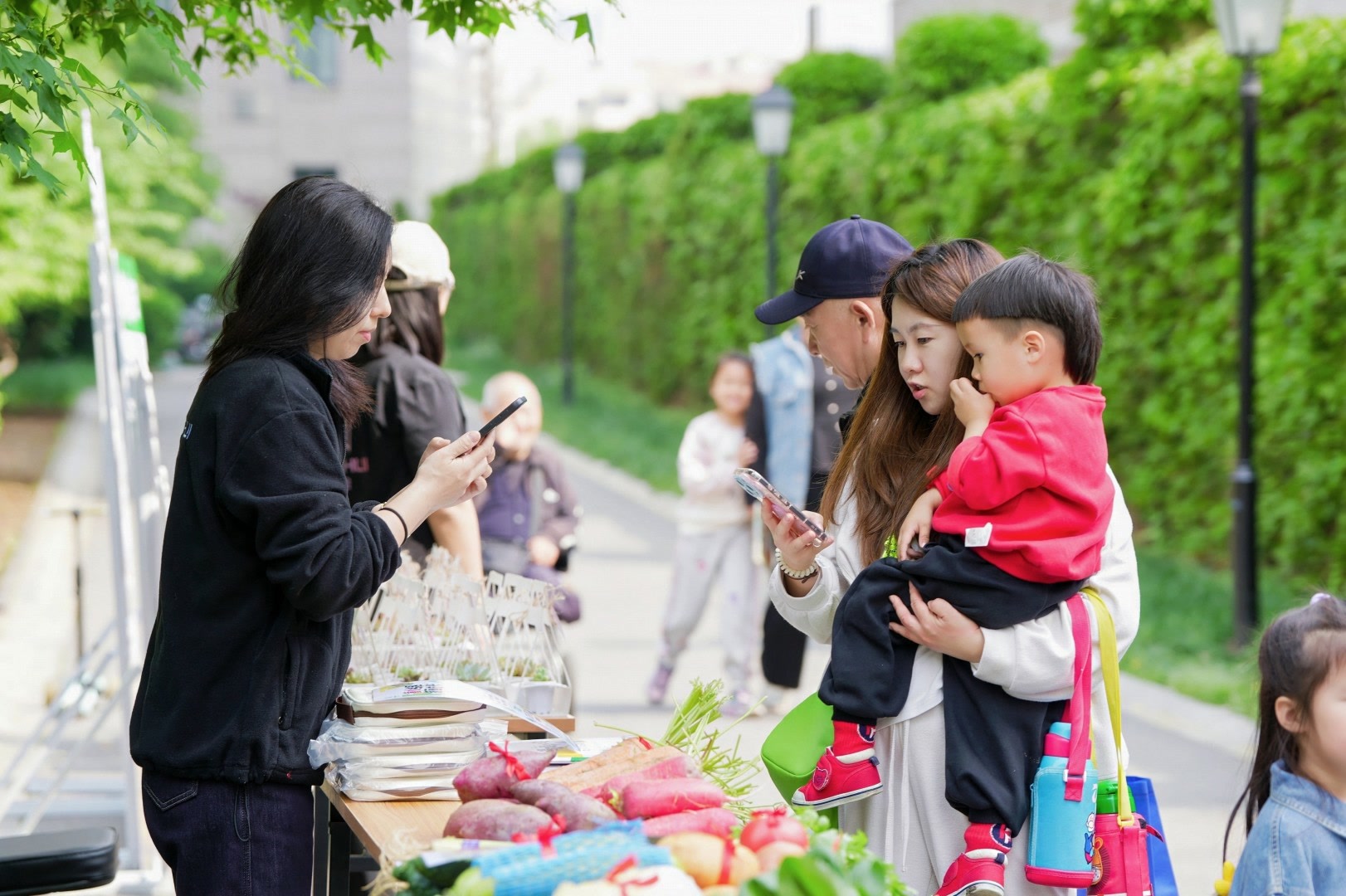 上午11时,丽景长安一期小广场上已经聚集了上百位居民,一派热闹景象。“这些都是刚从超市买来的新鲜蔬菜,看看想换什么?”广场一侧的活动展位前,工作人员正热情地接待着前来参与旧书换“新蔬”活动的大小朋友。展位上,整齐地码放着翠绿的生菜、鲜红的番茄等蔬菜,不少孩子在家长的陪伴下,递上旧书后开始兴致勃勃地挑选心仪的蔬菜。而他们递出的每一本旧书,后续经过整理后都将流转至社区图书角,让知识接力传递,也让更多孩子能在阅读中收获快乐。