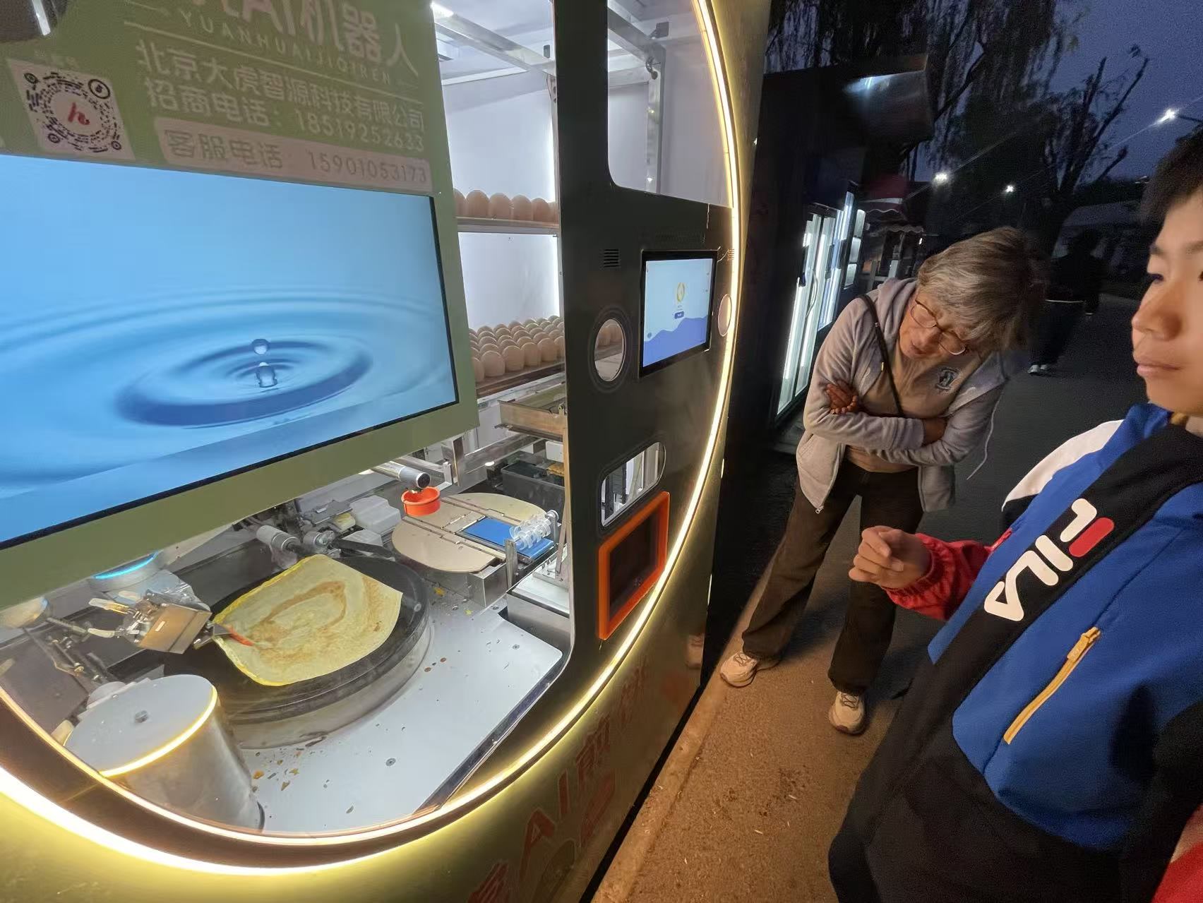 朝阳公园北码头附近,一台“圆虎AI煎饼机器人”成了游客路过必看的新奇景致。虽冠以AI机器人之名,它却并非人形设备,而是一台全自动智能煎饼机。
