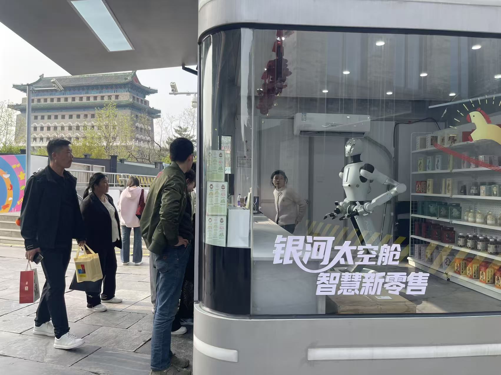 前门地铁站I口外,名为“银河太空舱”的机器人零售店成为“网红”,售货机器人是“春晚同款”。“你好啊,跟春晚大明星聊聊天。”它自带引流属性,揽客热情主动,货架上摆放着饮料、矿泉水、文创礼盒等商品,单价六七元的瓶装饮料最受欢迎。不少游客冲着体验机器人服务而来,它也是记者多日走访中见到的“最忙员工”。