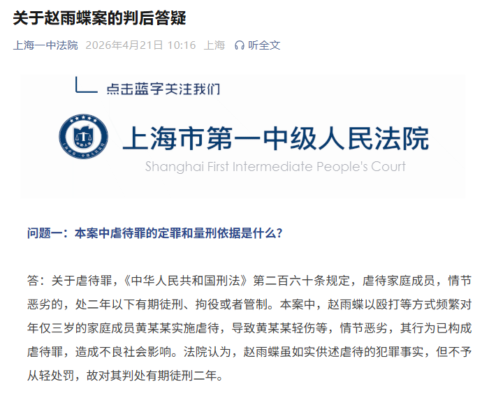 答:关于虐待罪,《中华人民共和国刑法》第二百六十条规定,虐待家庭成员,情节恶劣的,处二年以下有期徒刑、拘役或者管制。本案中,赵雨蝶以殴打等方式频繁对年仅三岁的家庭成员黄某某实施虐待,导致黄某某轻伤等,情节恶劣,其行为已构成虐待罪,造成不良社会影响。法院认为,赵雨蝶虽如实供述虐待的犯罪事实,但不予从轻处罚,故对其判处有期徒刑二年。