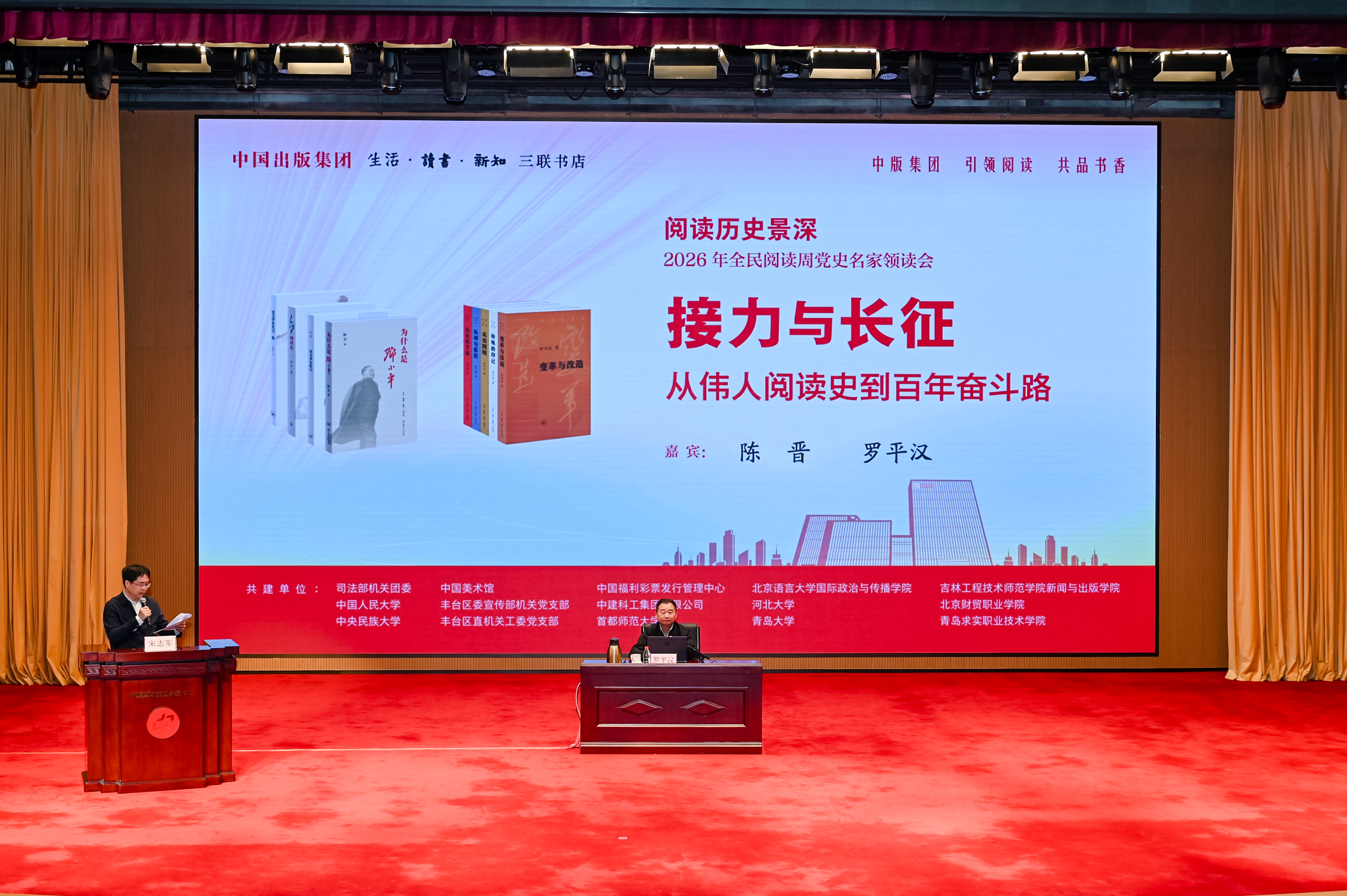 4月20日,由生活·读书·新知三联书店主办的“阅读历史景深——2026年全民阅读周党史名家领读会”,在北京中国国际出版交流中心举行。本次活动以“接力与长征——从伟人阅读史到百年奋斗路”为主题,党史专家陈晋、中央党校党史教研部原主任罗平汉两位党史名家登台领读。